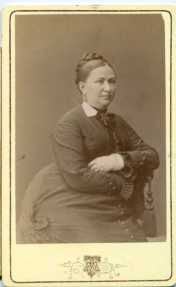 Porträtt av en kvinna som vilar mot en stolsrygg.