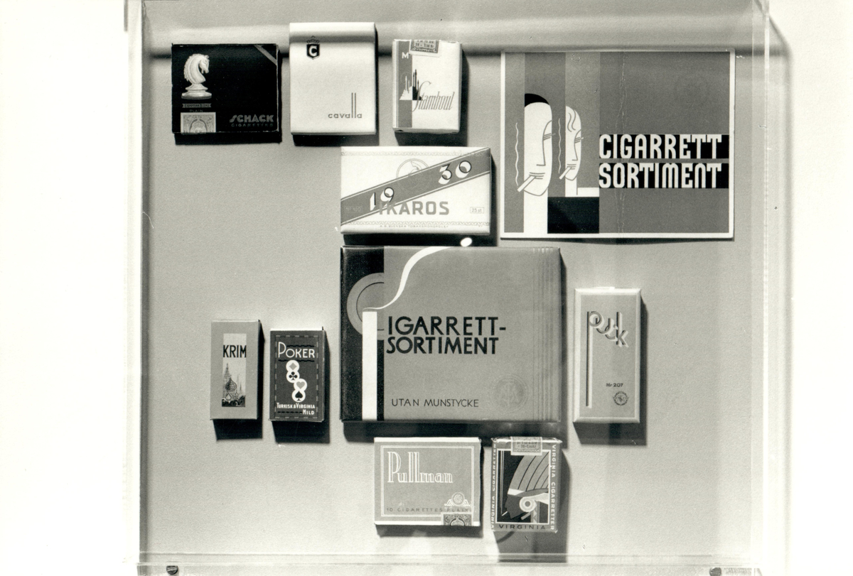 Titel: Utställningen "Förpackningar" i Tobaksmuseet 1990.
