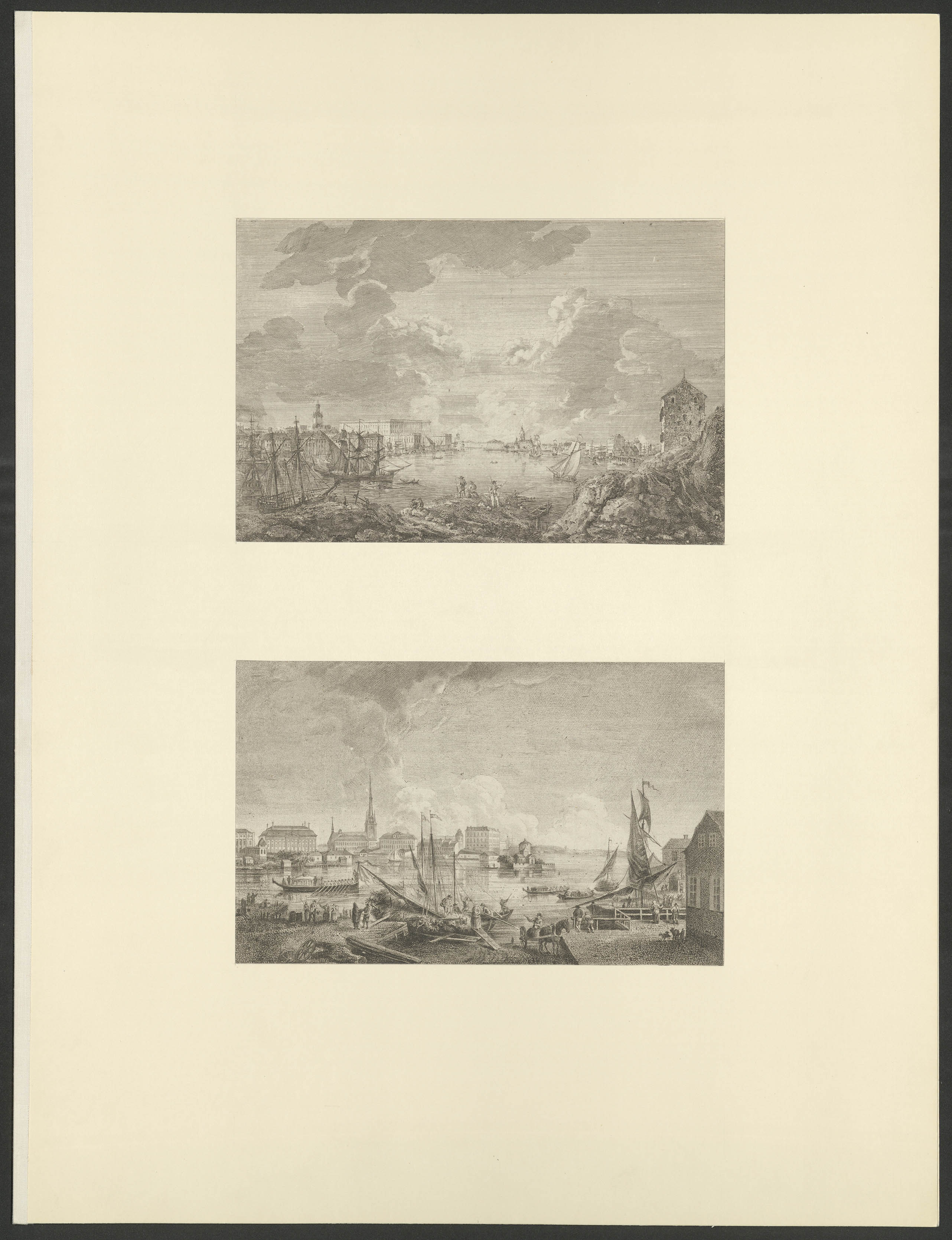 Utsigt af Stockholm.Hans Excellence Herr Riksrådet m.m. Grefwe Gustaf Ph. Creuts allerödmjukast tillägnat af Elias Martin || Utsigt af Stockholm.Herr Öfwer-Directeuren och Riddaren Meyer tillägnas detta af Dess vän och tjenare Elias Martin."