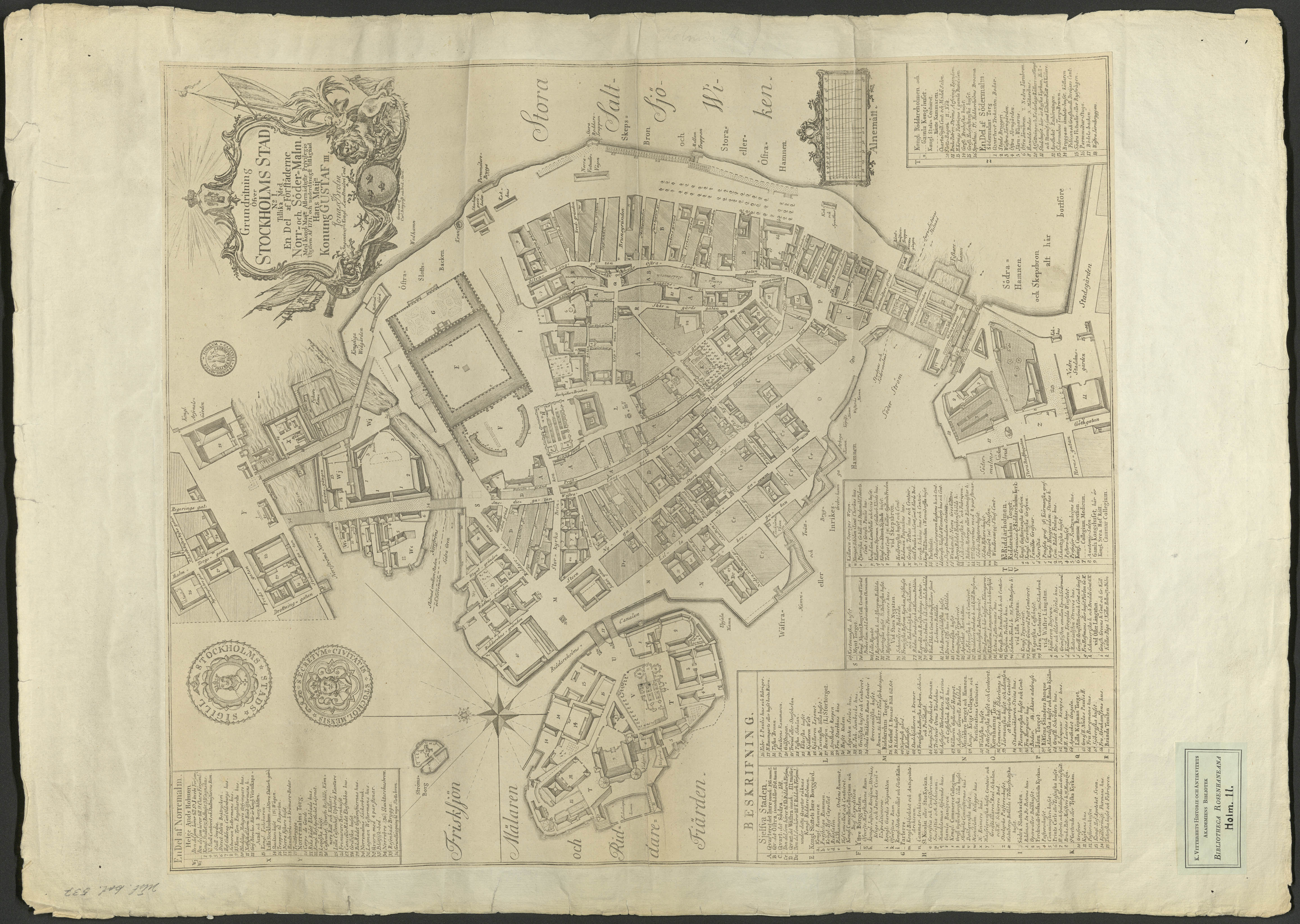 Grundritning öfver Stockholms stad No I. Tillika med en del af förstäderne Norr- och Söder-malm..