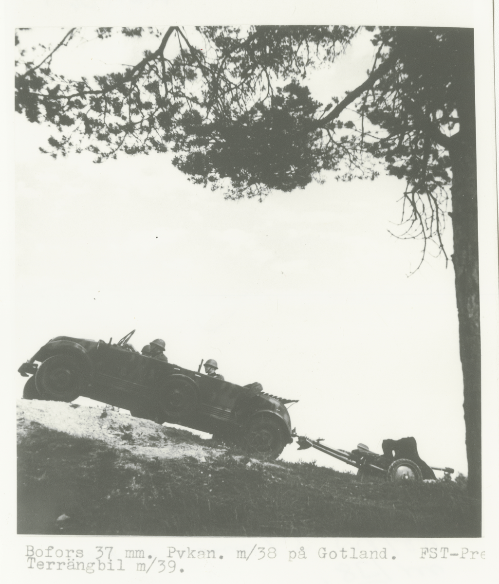 Bofors 37 mm pansarvärnskanon m/1938 dragen av terrängbil m/1939 Tempo på Gotland, 1940-tal.