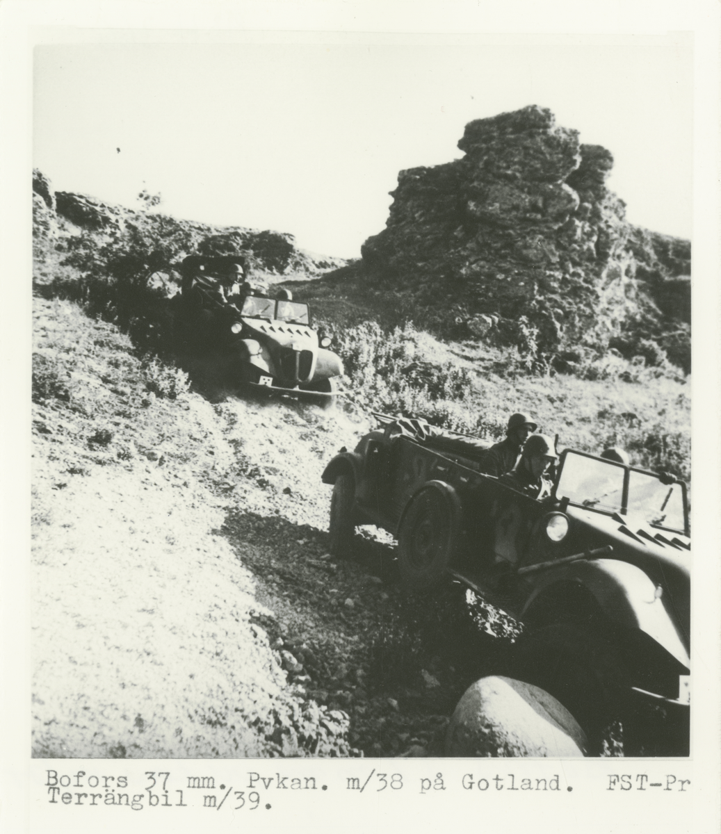 Bofors 37 mm pansarvärnskanon m/1938 dragen av terrängbil m/1939 Tempo på Gotland, 1940-tal.