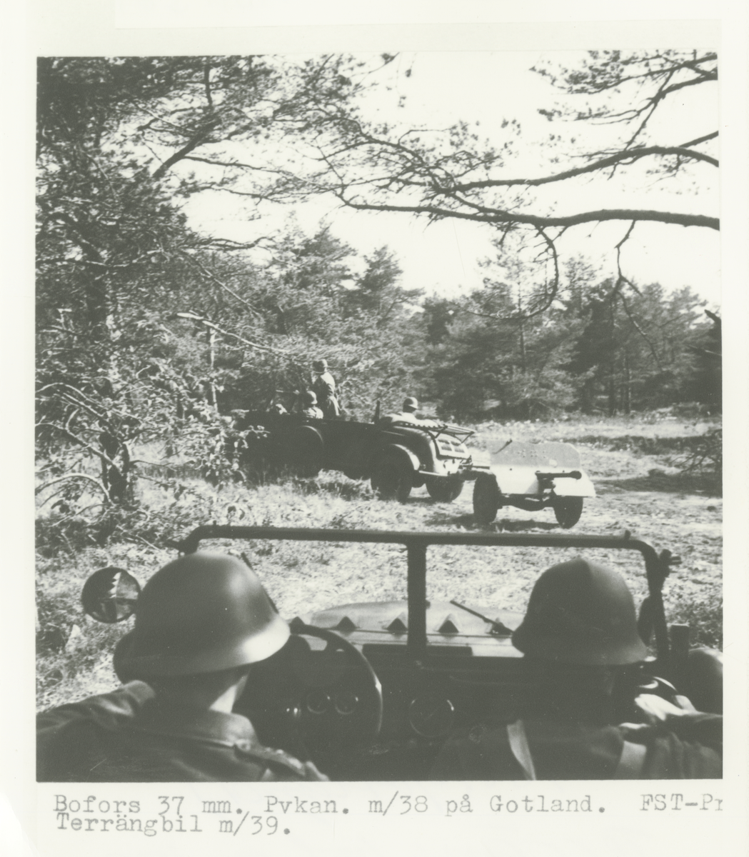 Titel: Bofors 37 mm pansarvärnskanon m/1938 dragen av terrängbil m/1939 Tempo på Gotland, 1940-tal.