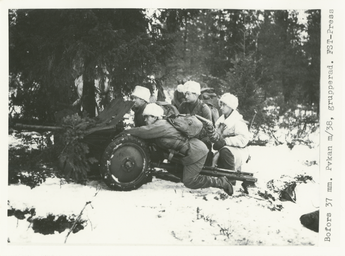 Bofors 37 mm pansarvärnskanon m/1938 i en snötäckt skog.