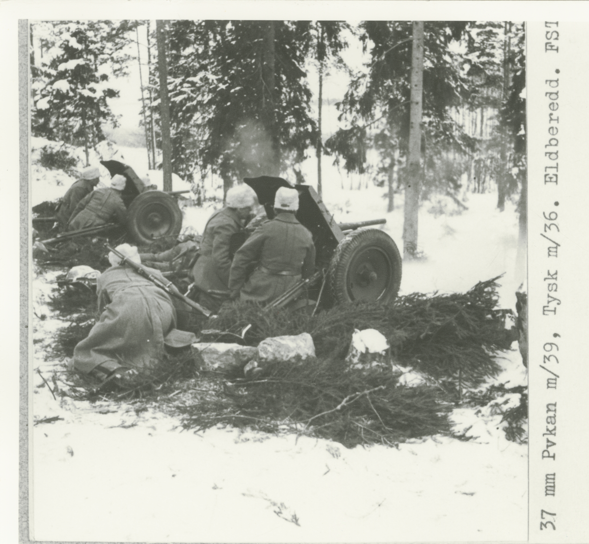 Bofors 37 mm pansarvärnskanon m/1939 i eldställning.