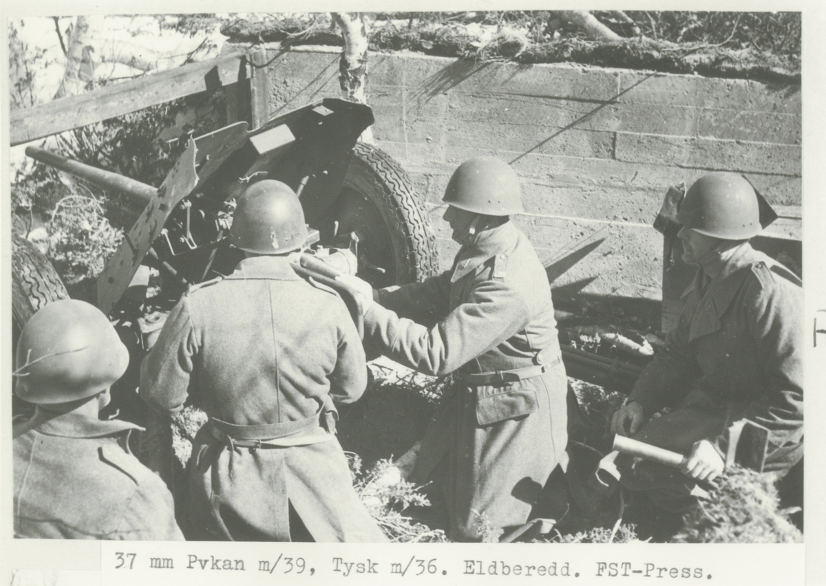 Bofors 37 mm pansarvärnskanon m/1939 i eldställning.