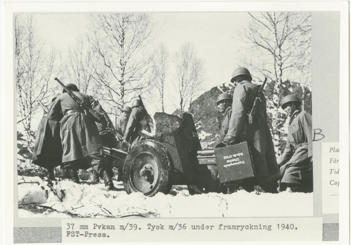 Bofors 37 mm pansarvärnskanon m/1939 under framryckning, 1940.