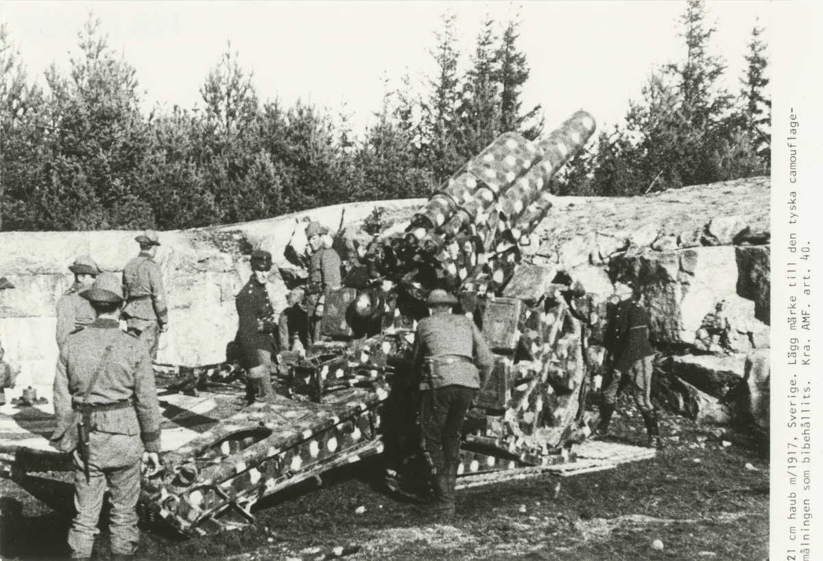 Titel: 21 cm haubits m/1917 i skytteställning.