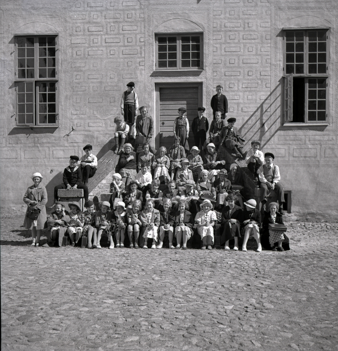 Grupporträtt vid okänt evenemang på Kalmar slott.