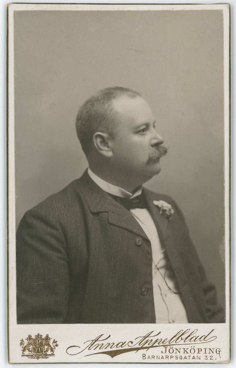 Porträtt på Redaktör Thure Sällberg född i Nydala den 14 november år 1854 student i Jönköping år 1874 död i Värnamo den 27 januari år 1908.