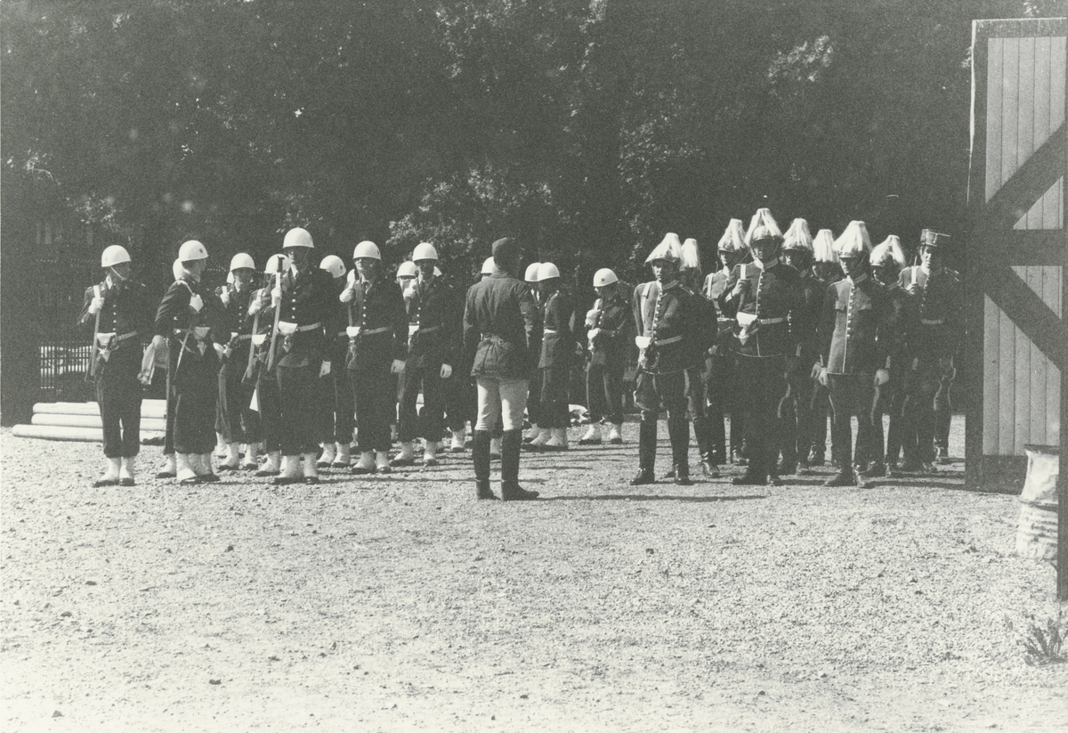 K 1 övar kortegevägen inför kungabröllopet den 18 juni 1976. Uppställning på gården under förberedelserna.
