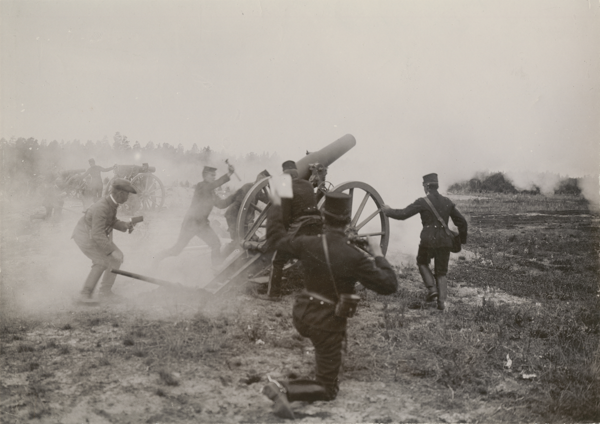 Titel: 16 cm haubits m/1891 i skjutövning på Marma skjutfält.