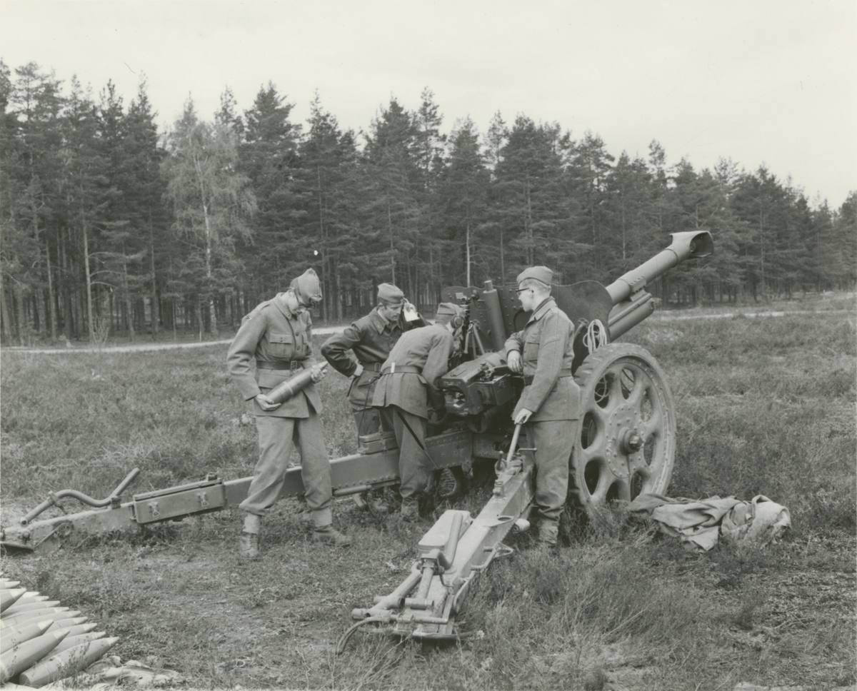 15 cm haubits m/1938? med rekylbroms under laddning.