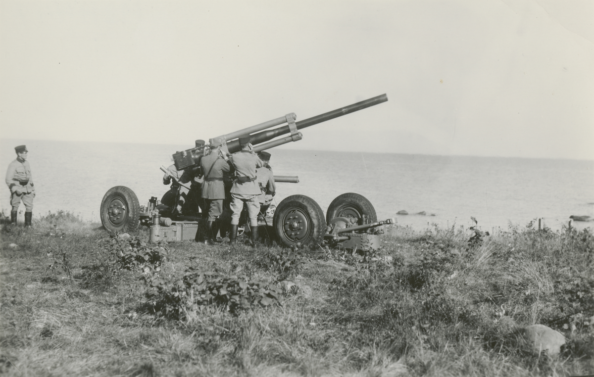 7,5 cm luftvärnskanon m/1937 före eldgivning, Karlsborg.