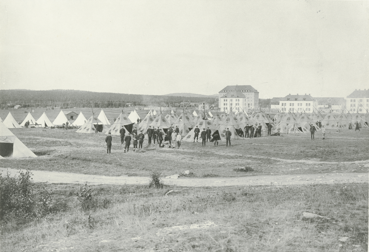 Norrbottens regemente I 19, tältläger på ett fält vid regementet under en försöksmobilisering, 1912.