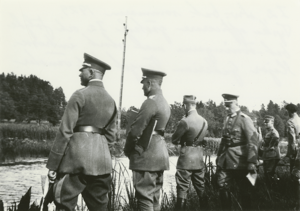 Göta Livgarde I 2 stridsvagnsbataljon under sommarövning, tyska officerare gästar I 2, med major Guderian till vänster.