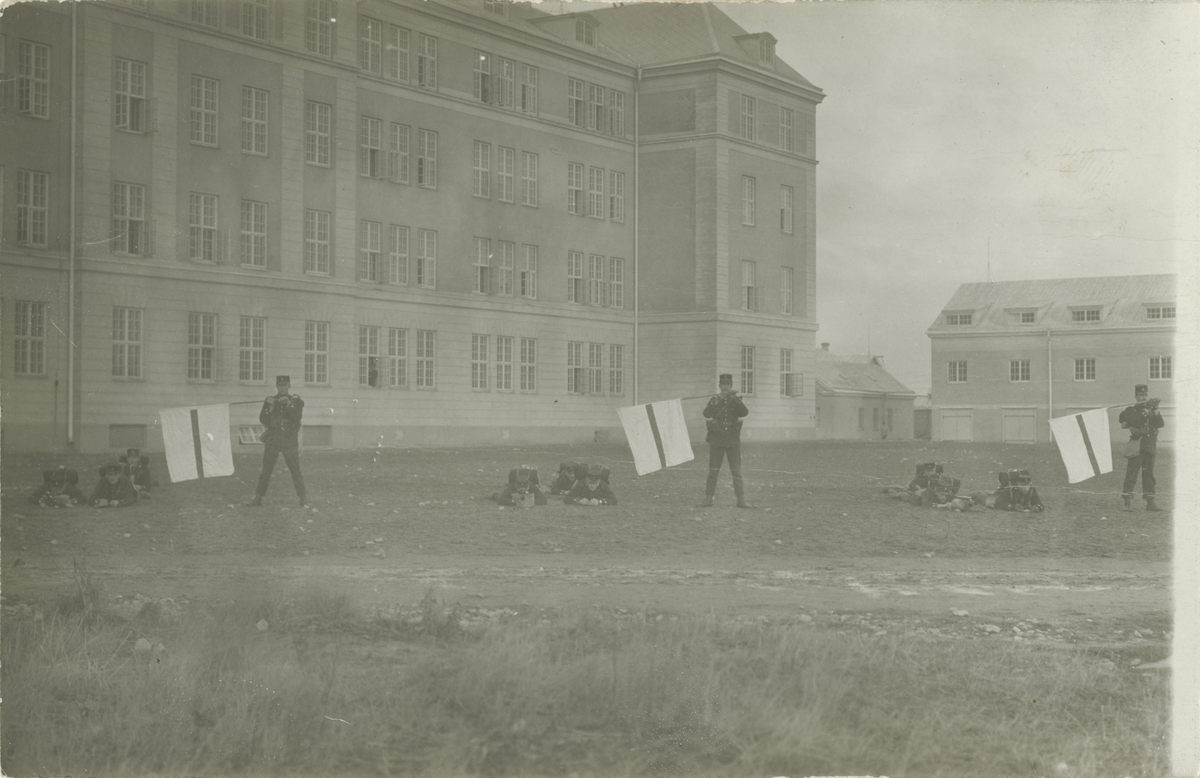Patrull ur Södermanlands regemente I 10 signalavdelning, övning i morsering.