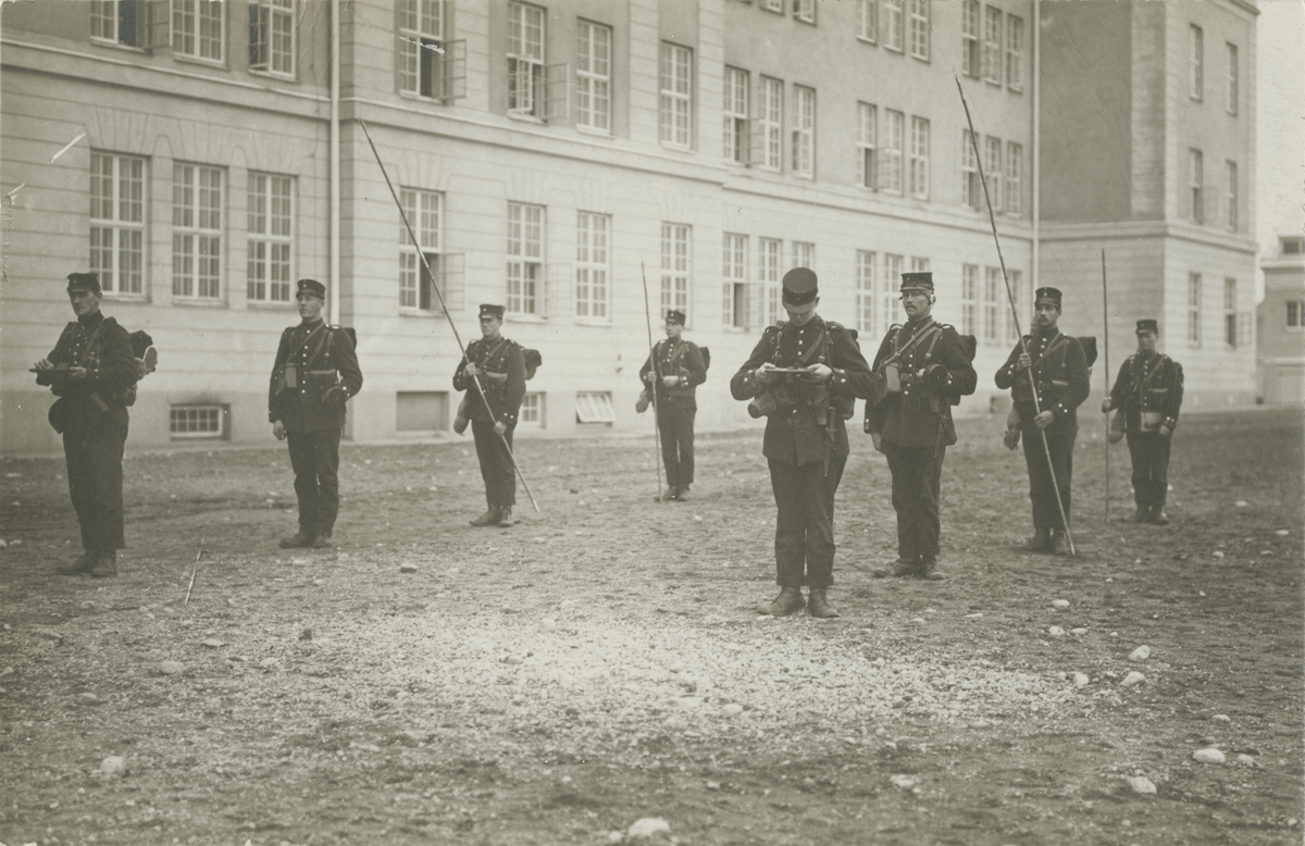 Titel: Patrull ur Södermanlands regemente I 10 signalavdelning, telefonering på gång.