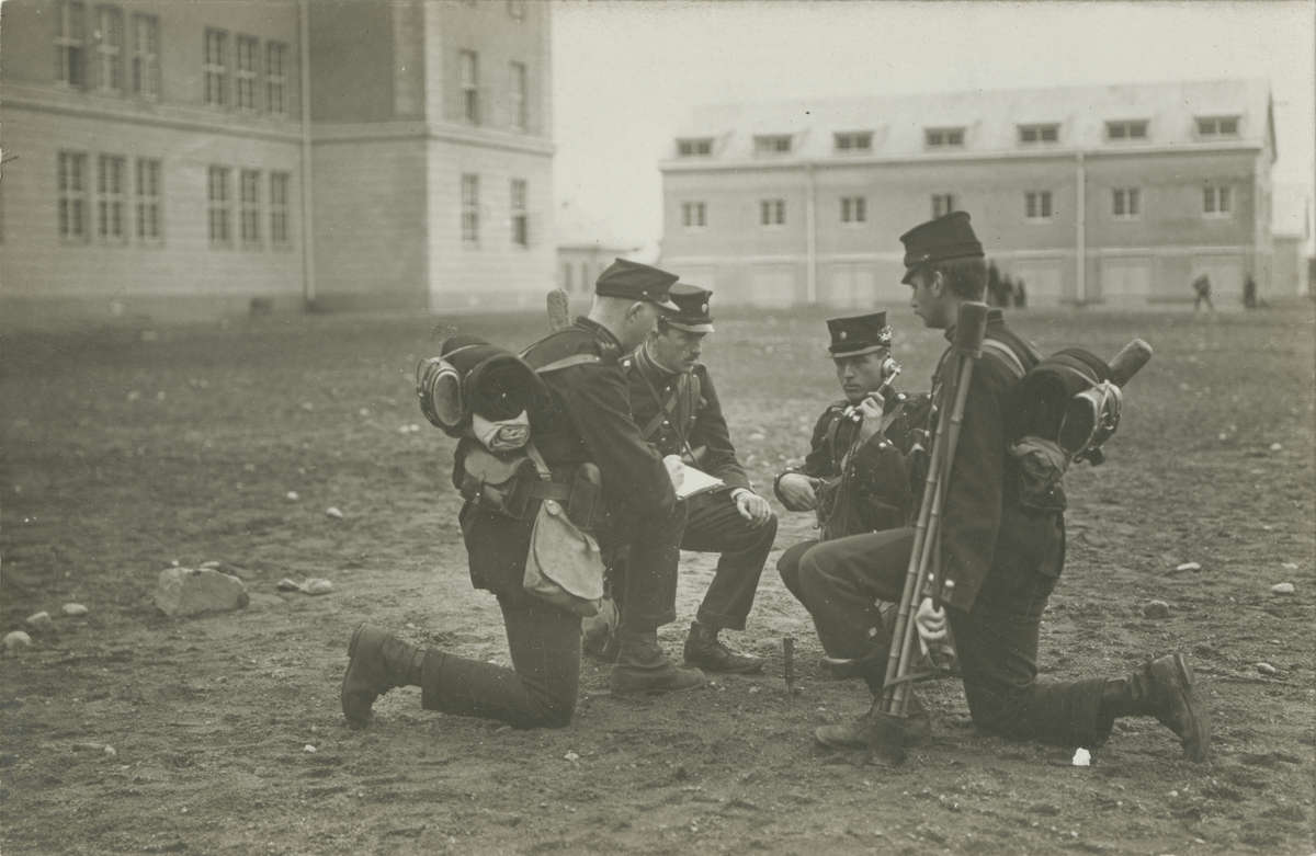 Titel: Patrull ur Södermanlands regemente I 10 signalavdelning, telefonering på gång.