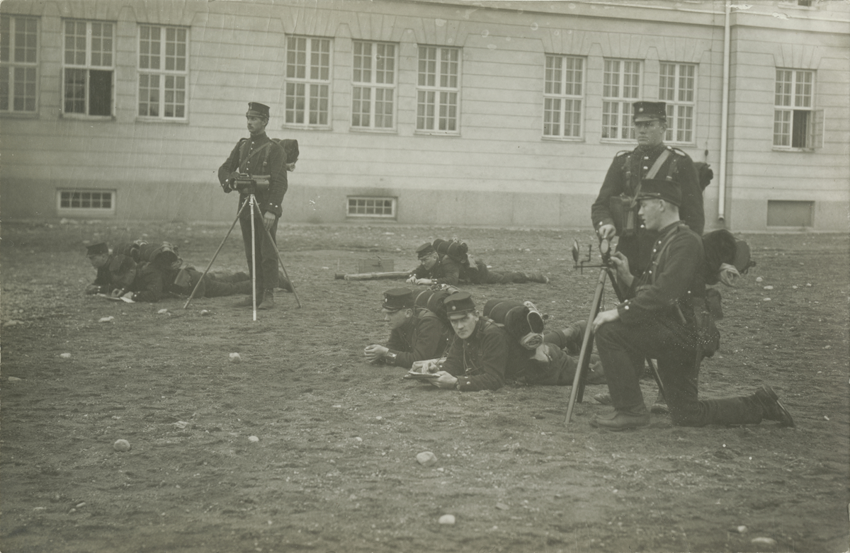 Patrull ur Södermanlands regemente I 10 signalavdelning, övning med heliograf och signallampa.