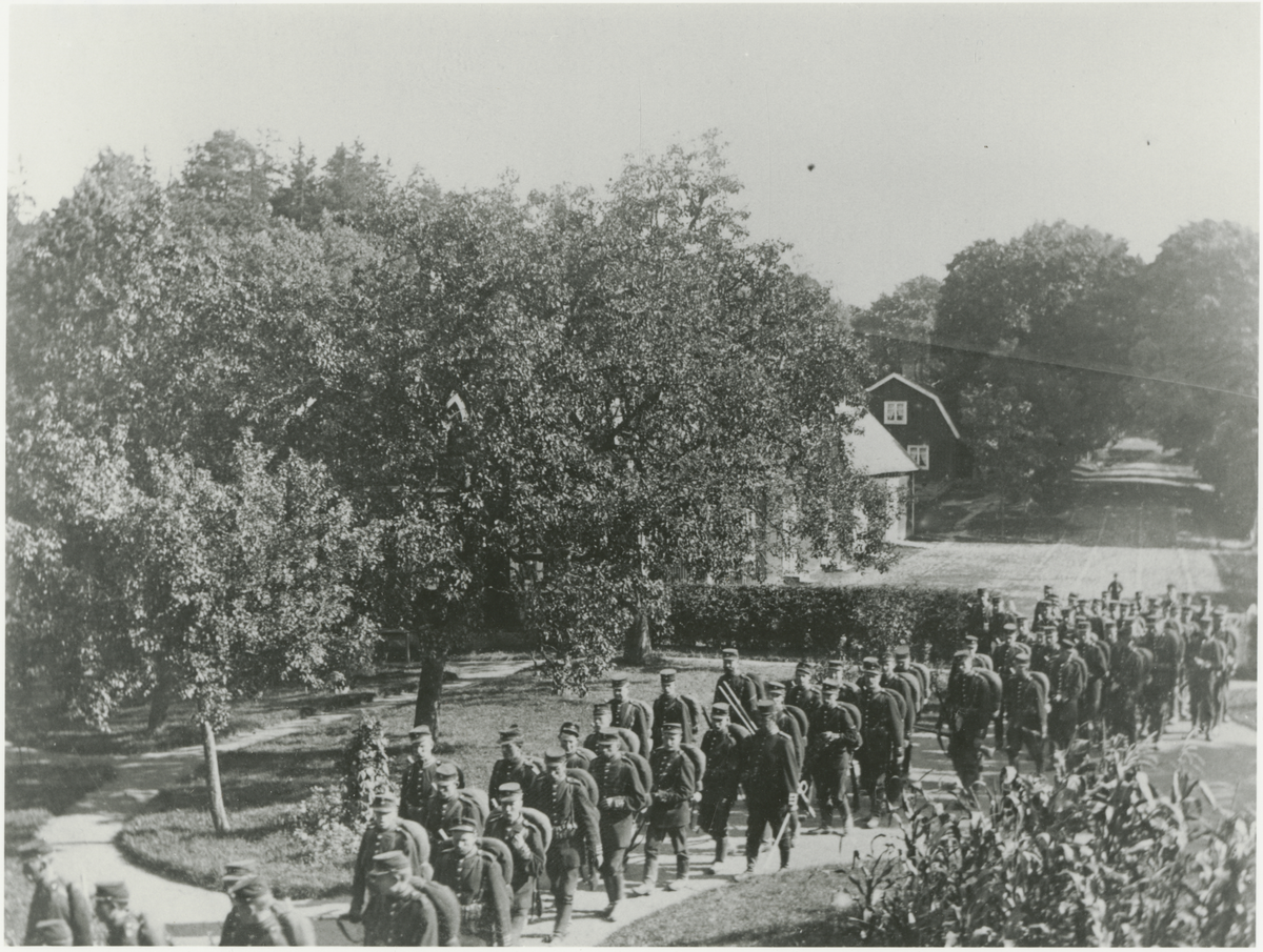 Marsch genom trädgården Boråkra (Väståkra), Nättraby socken, Blekinge.