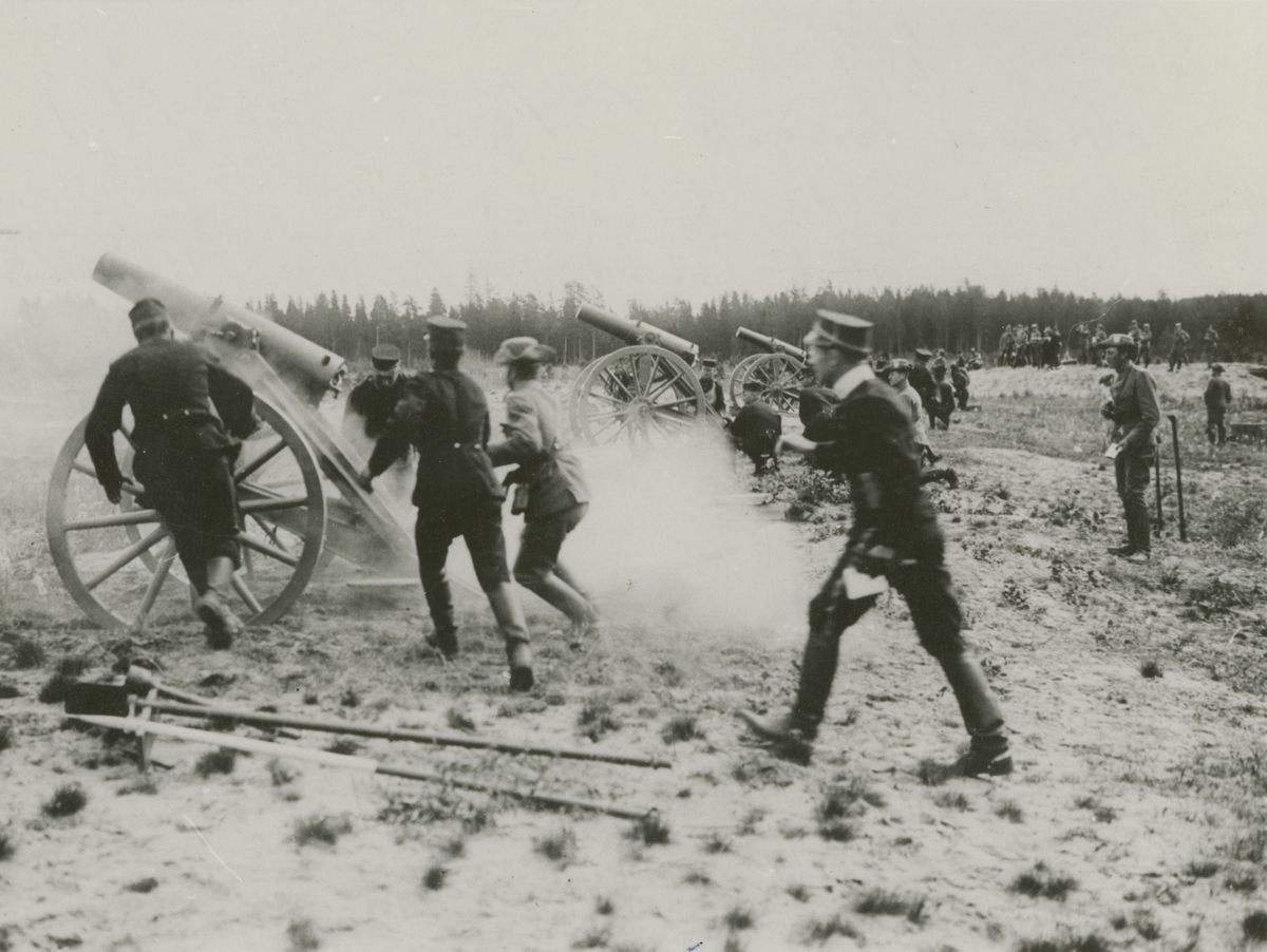 Titel: Skjutning med tre 16 cm haubitsar m/1885 vid Marma skjutfält.