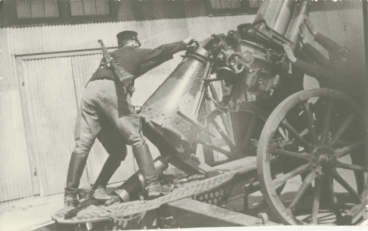 Titel: Fyra man hanterar en 8 cm luftvärnskanon fm/1922.