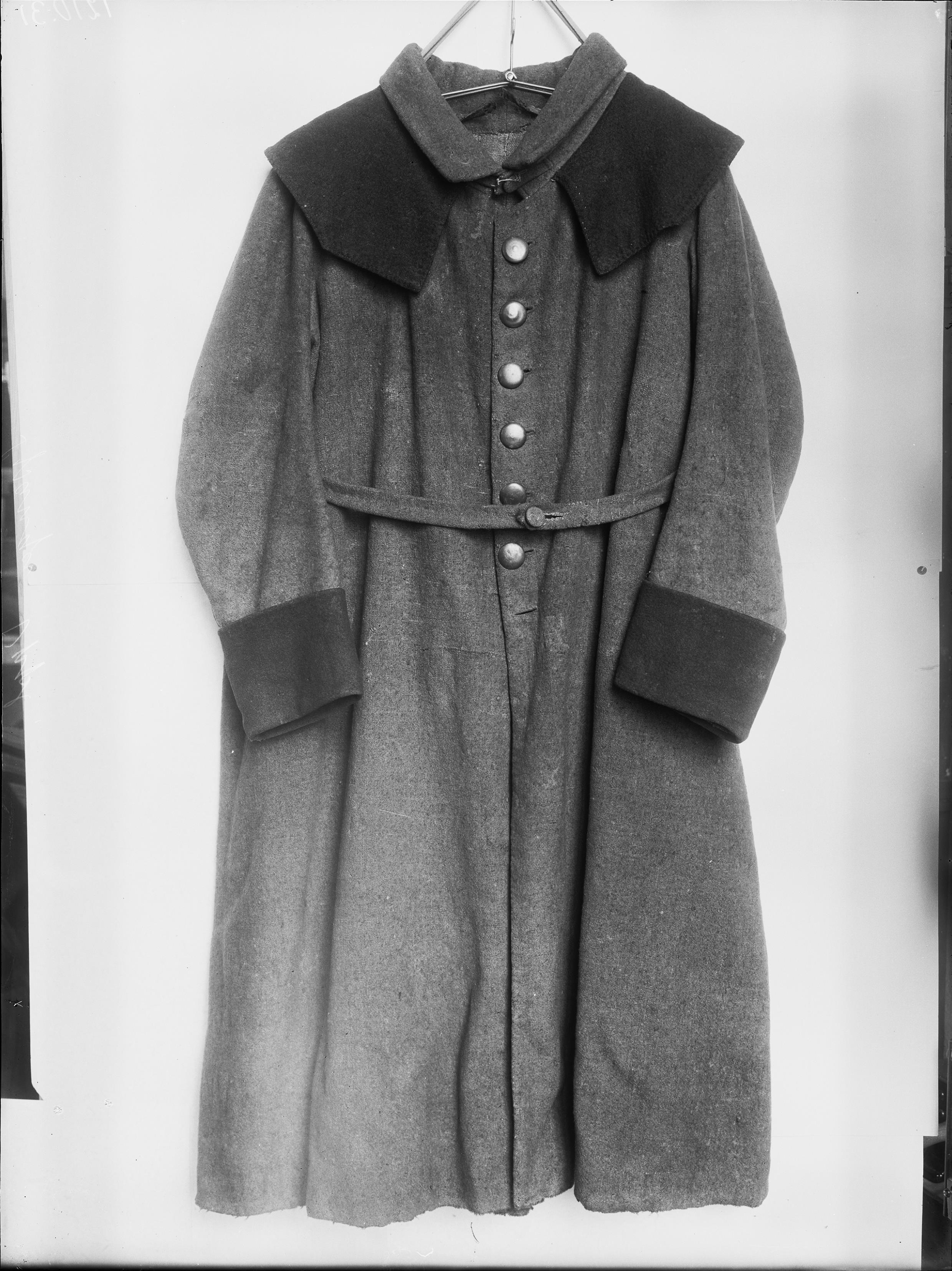 Kyrkvaktarrock av blå vadmal med röda uppslag, 1800-talet. Framsida.