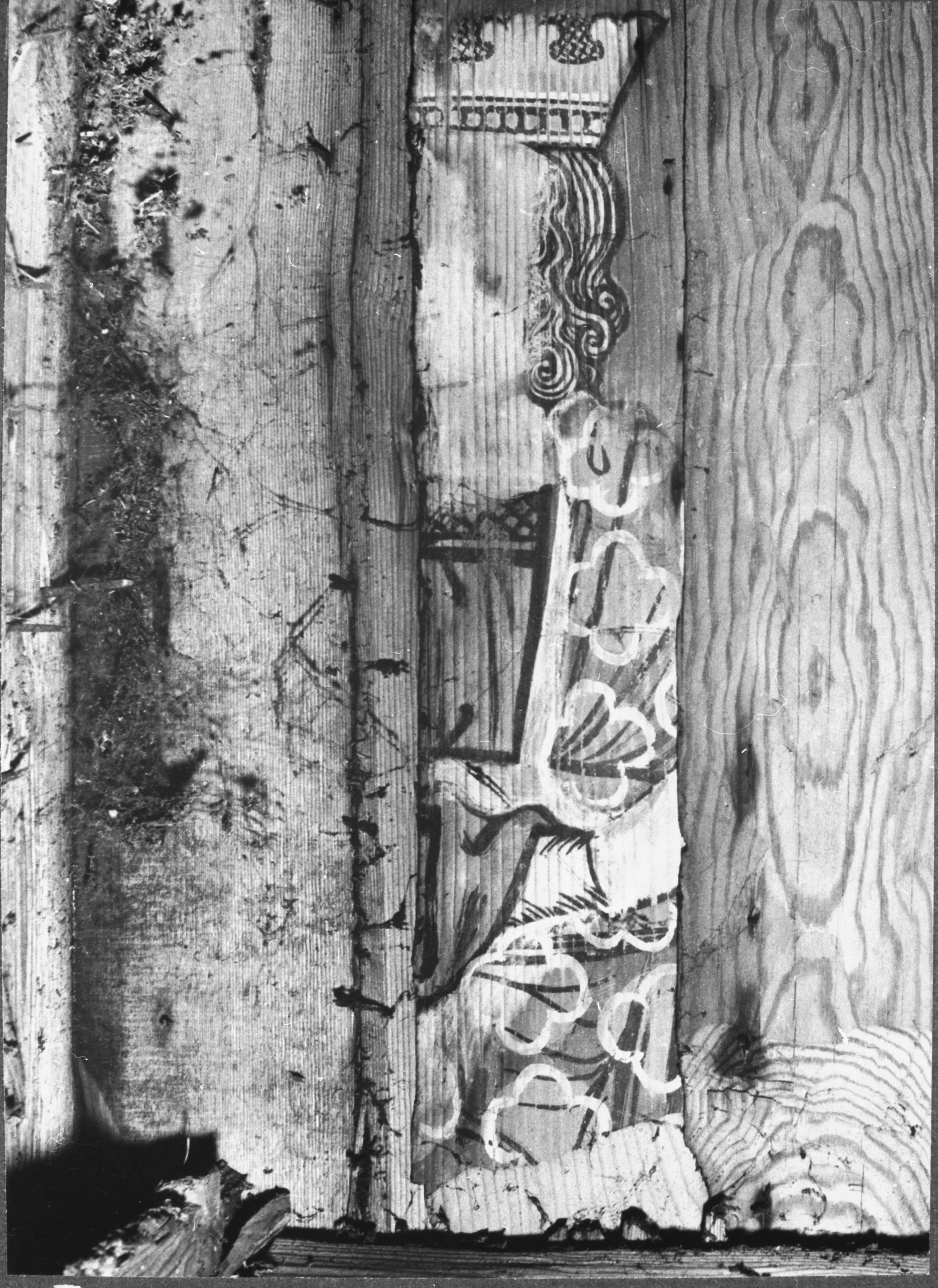 Målade brädor från tidigare kyrka.