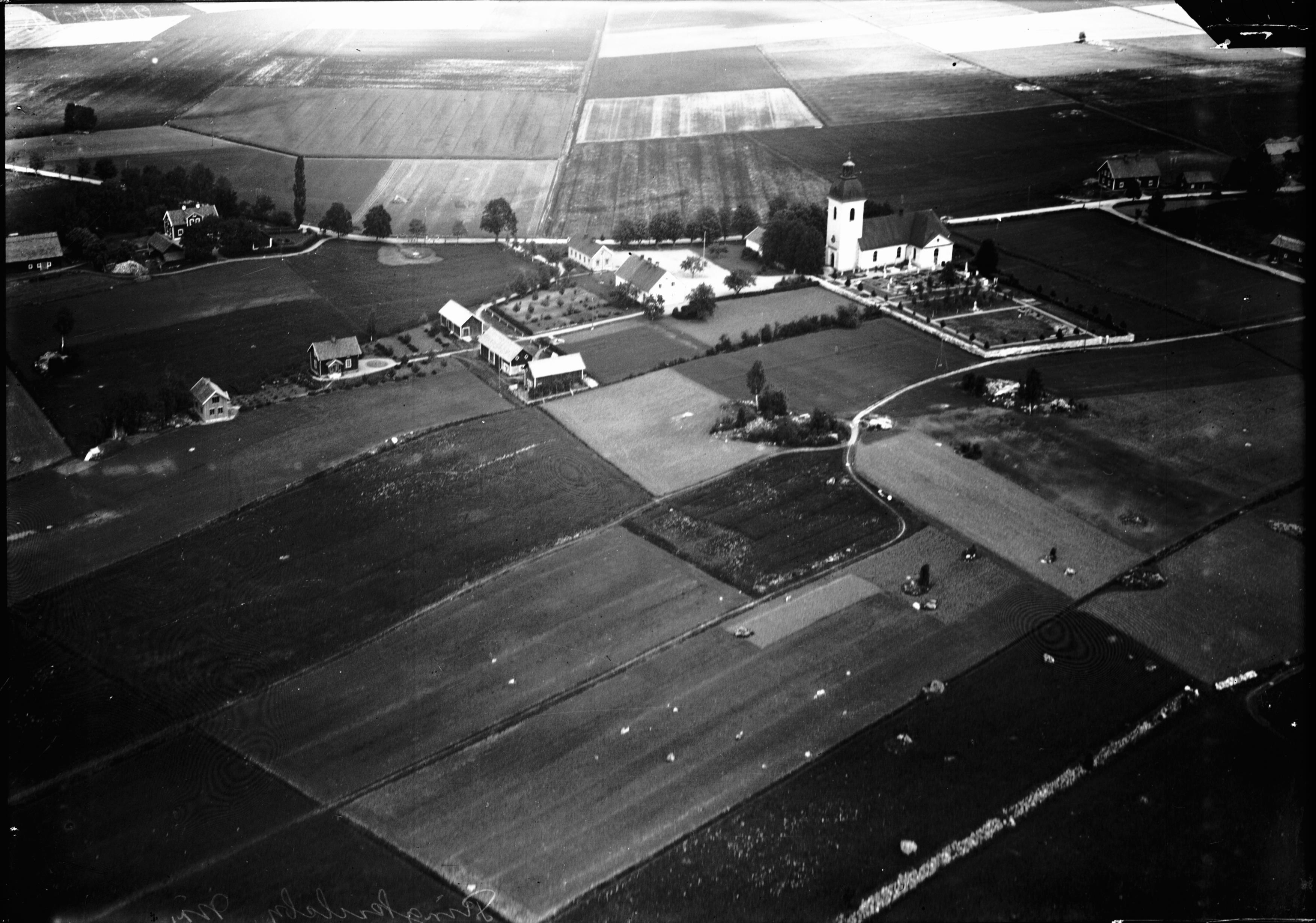 Kyrkan från sydväst med omgivningar. Flygfoto.