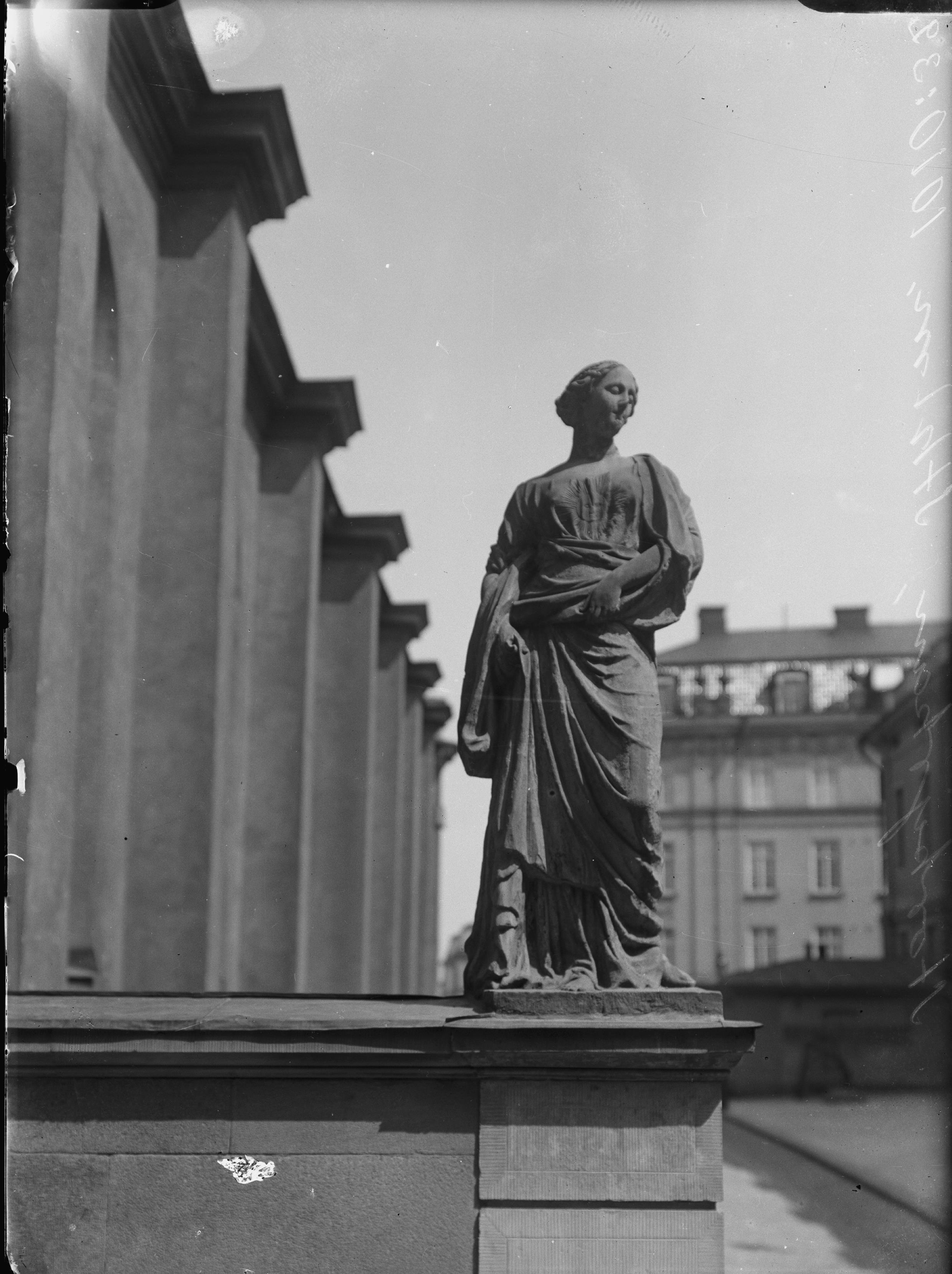 Västra kyrkogårdsingången, allegorisk skulptur föreställande Kärleken, av P. Schultz 1675.