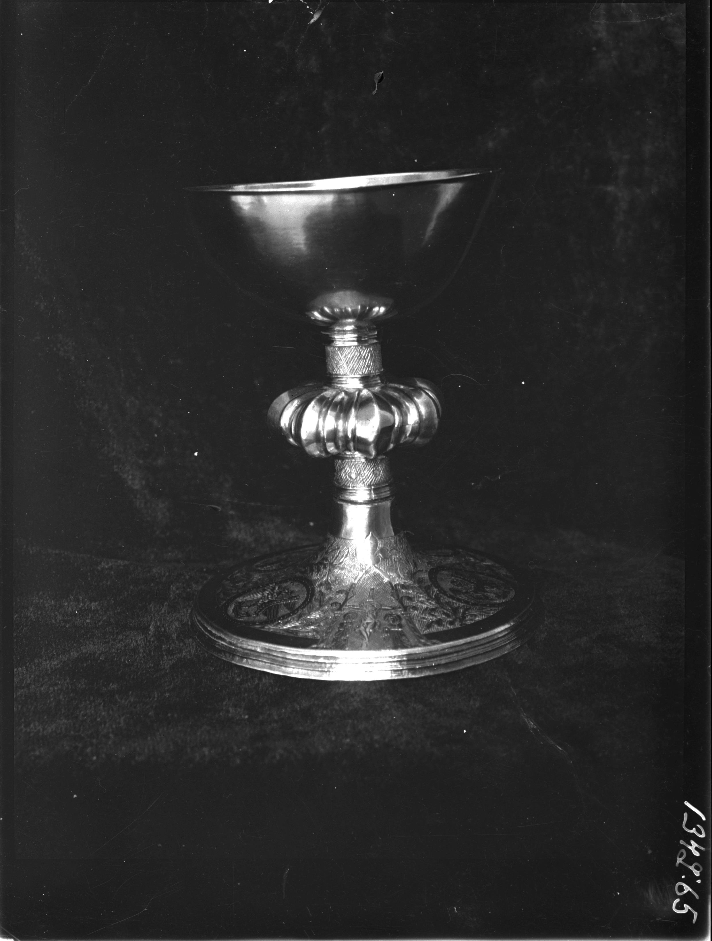 Kalk, förgyllt silver, troligen svenskt arbete från 1400-talet. Snabbinv.