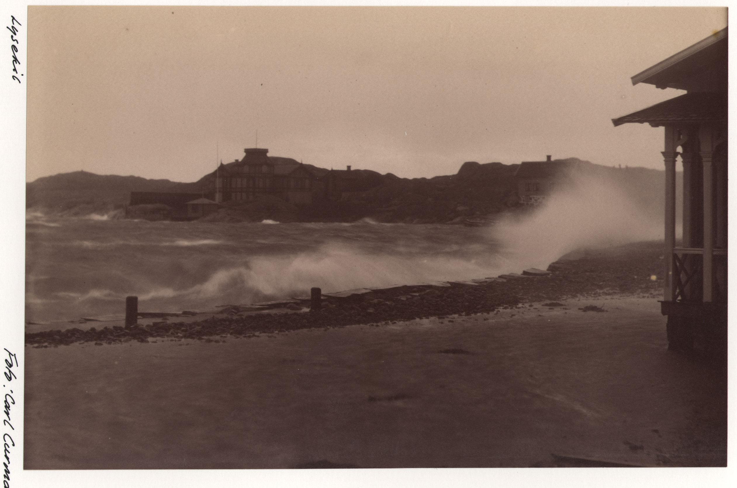 Storm vid kyrkviken. På udden brukspatron G. Hanströms villa (idag riven).
