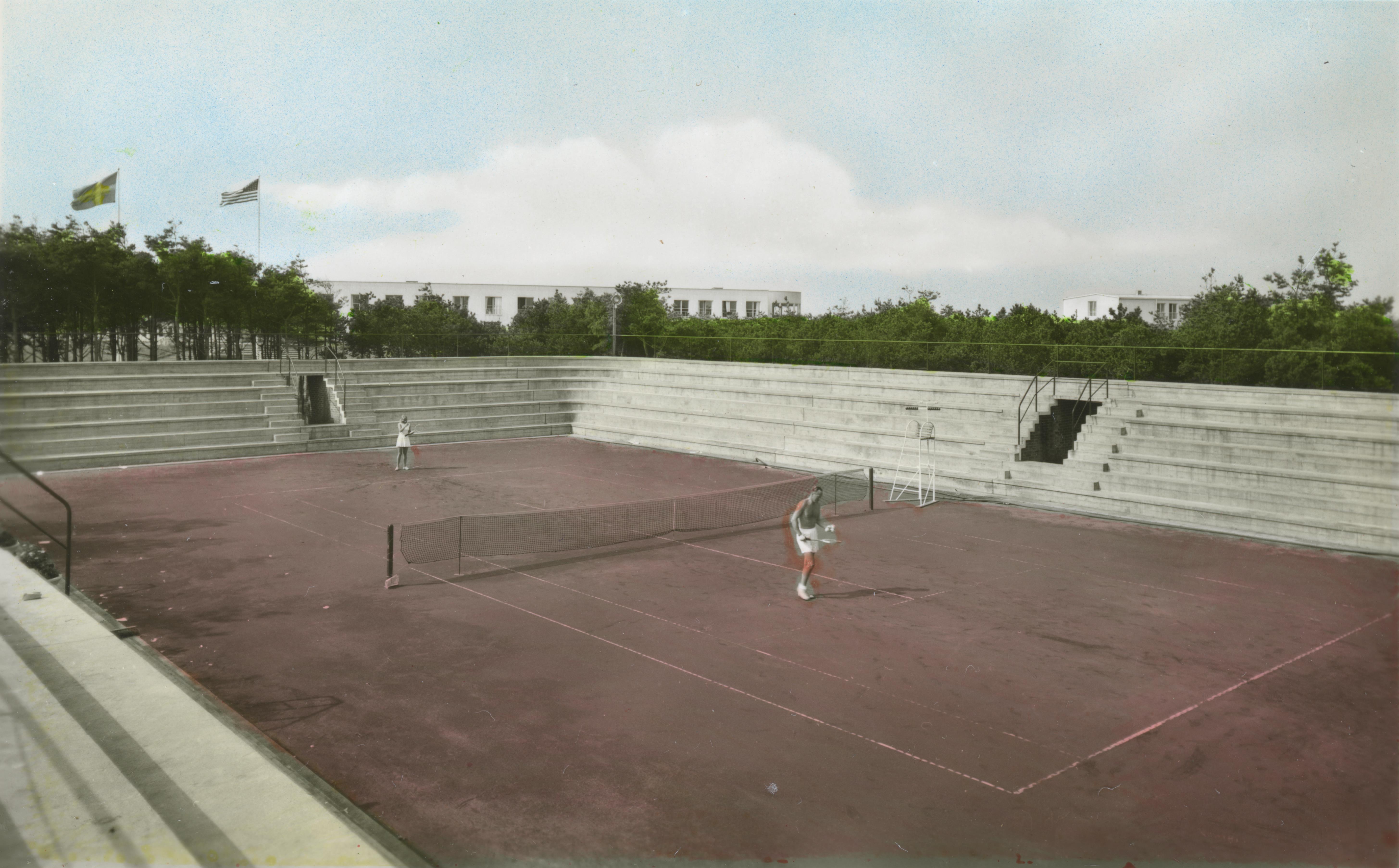 Tennisstadion. Handkolorerad variant av ac00569.