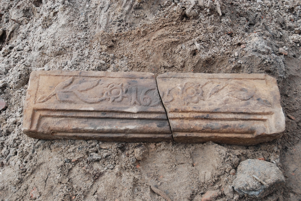 Ett överstycke som suttit över en öppen spis, påträffad vid en arkeologisk undersökning i kvarteret Abborren i centrala Jönköping. Hällen var tillverkad i sandsten och dekorerad med blommor och årtalet 1695. När den öppna spisen blev omodern slängde man ut den och ersatte med en kakelugn istället. Troligen har detta hänt under den första halvan av 1700-talet.