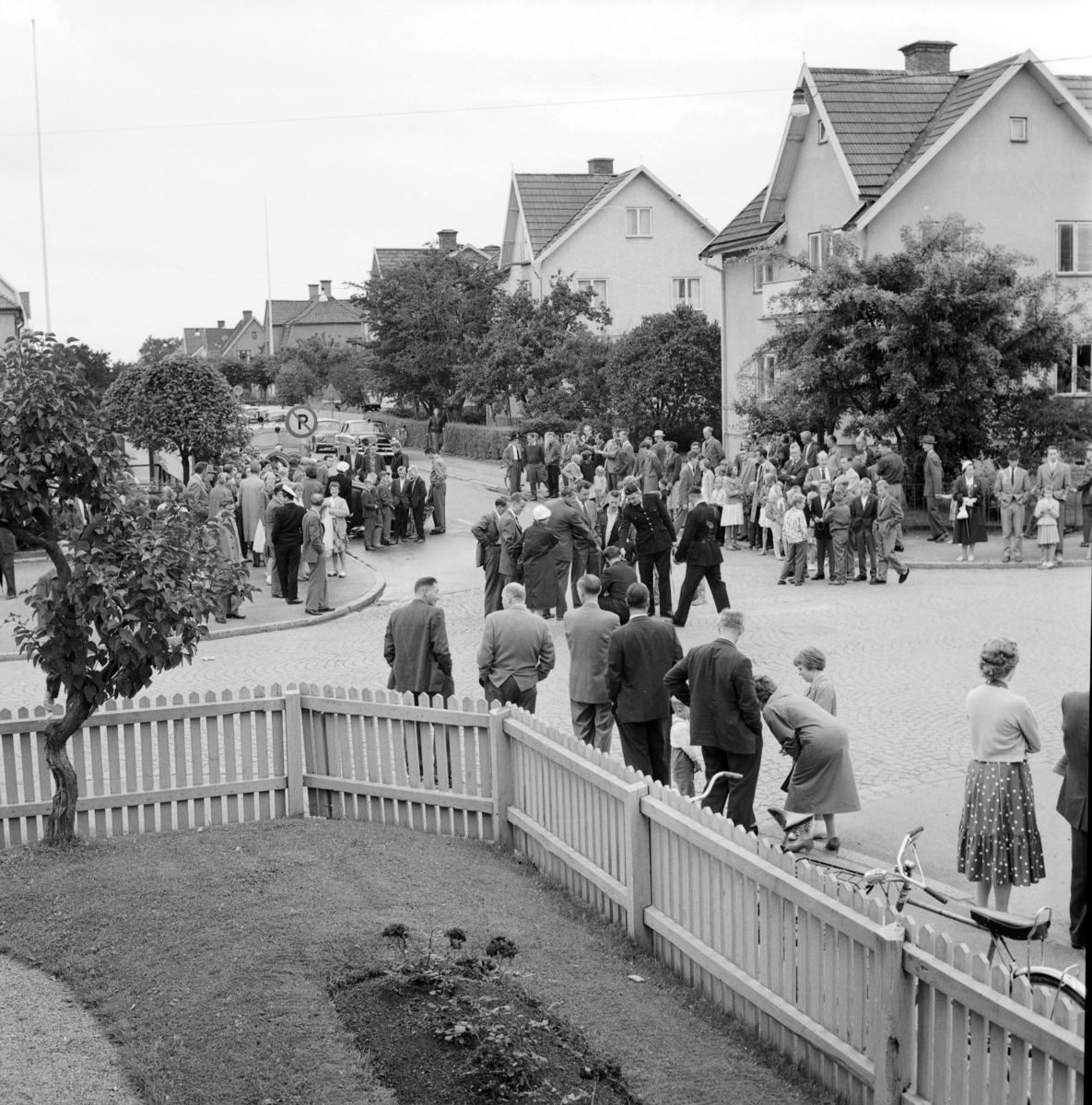Just vid förbudsskylten utanför Ericsons blomsterbutik på Vättergatan vid Folkets hus i Huskvarna har en Volvo PV hamnar på taket.
