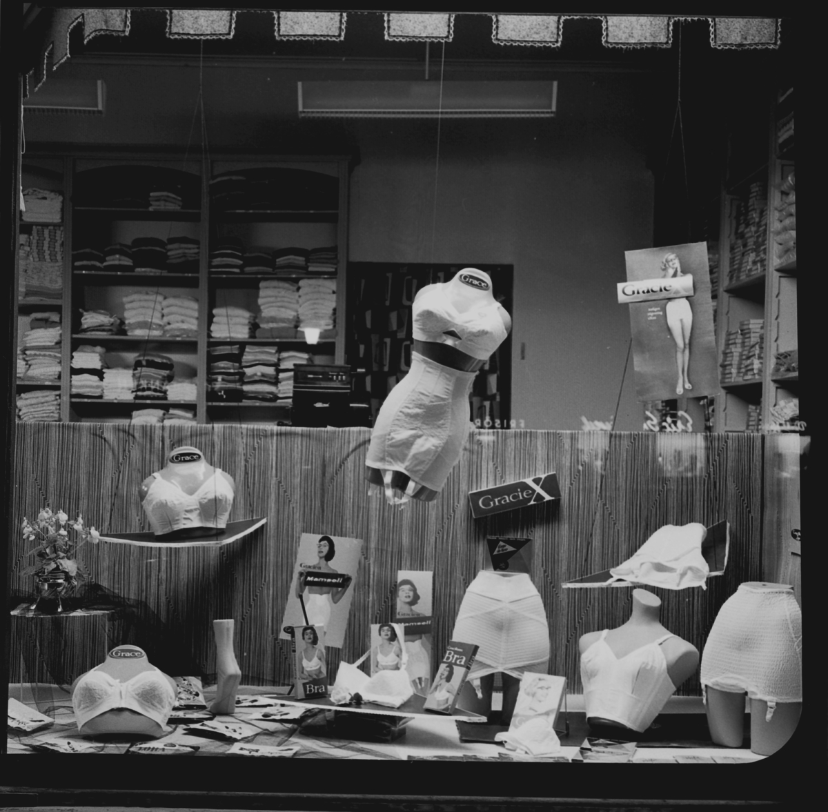 Skyltning med underkläder hos Arbetsboden i Huskvarna.