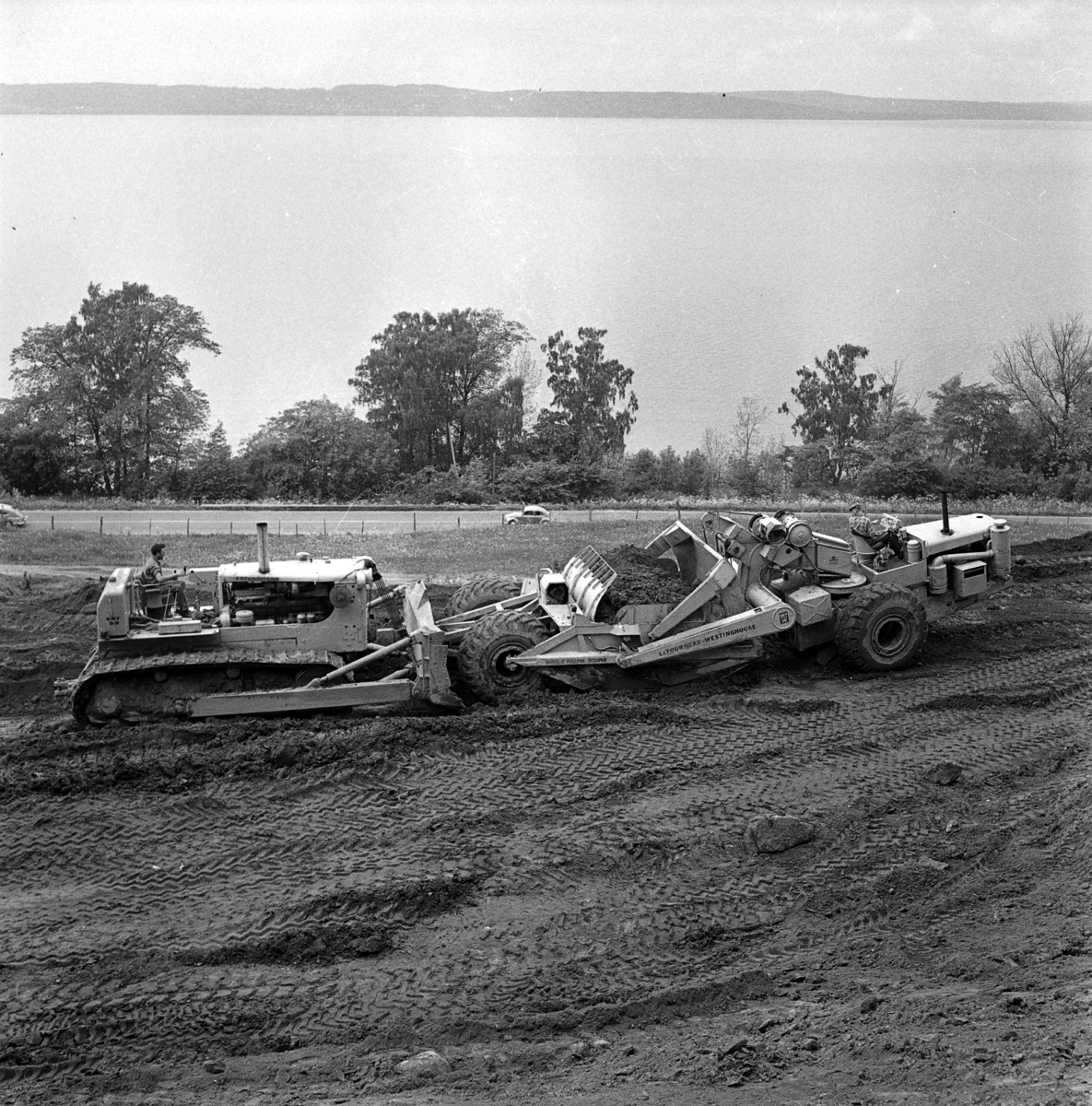 En maskin håller på att schakta inför det nya motorvägsbygget utanför Huskvarna den 3 juni. Riksettan blir E4:an.