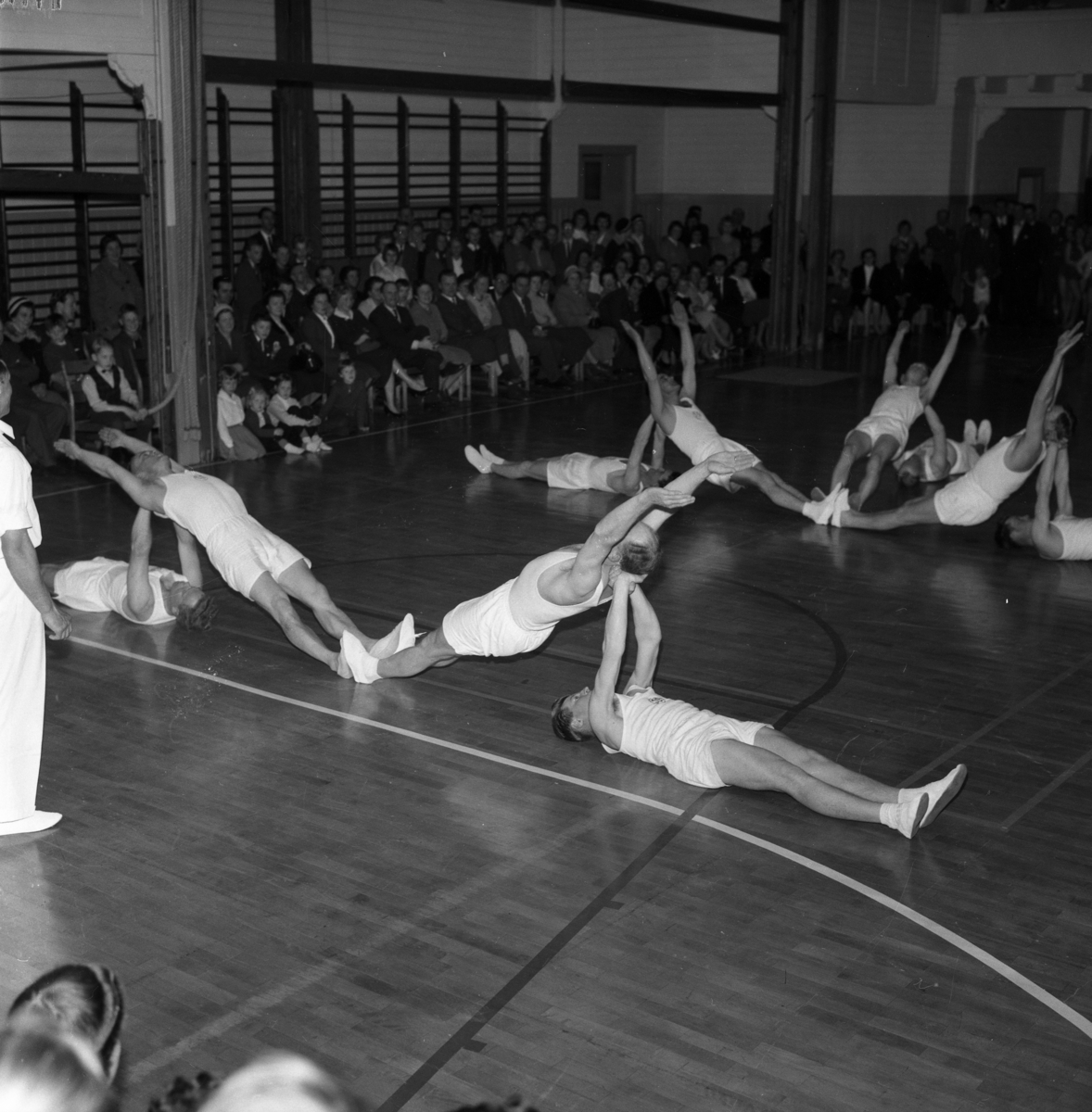 Motionsgymnastik för herrar i gamla idrottshuset i Huskvarna.