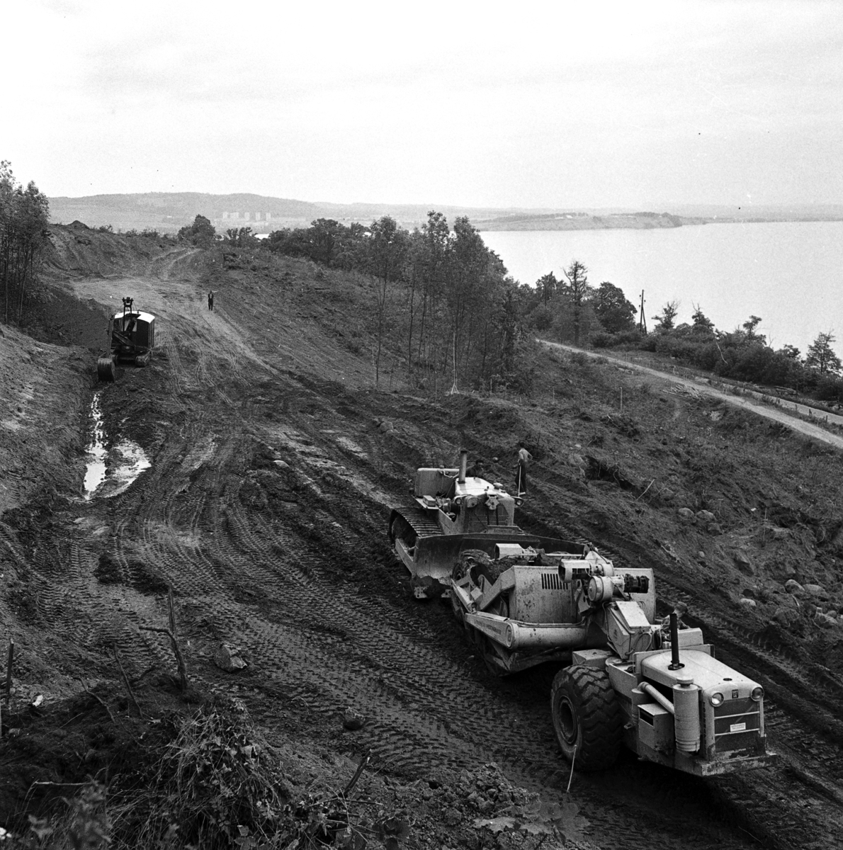 En maskin håller på att schakta inför det nya motorvägsbygget utanför Huskvarna den 3 juni. Riksettan blir E4:an.