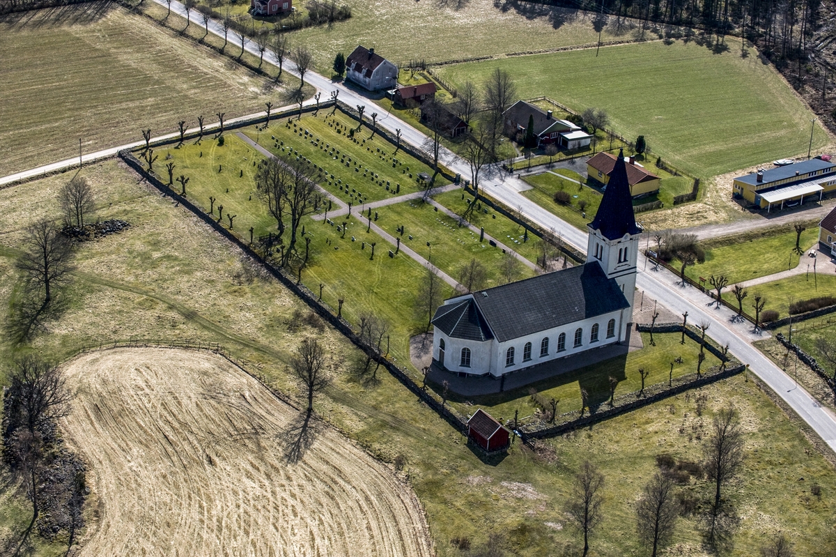 Flygfoto över Lemnhults kyrka i Vetlanda kommun.