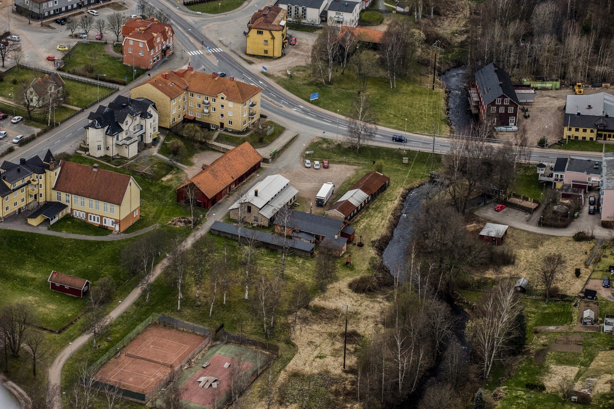 Flygfoto över Julles Gjuteri i Mariannelund, Eksjö kommun.