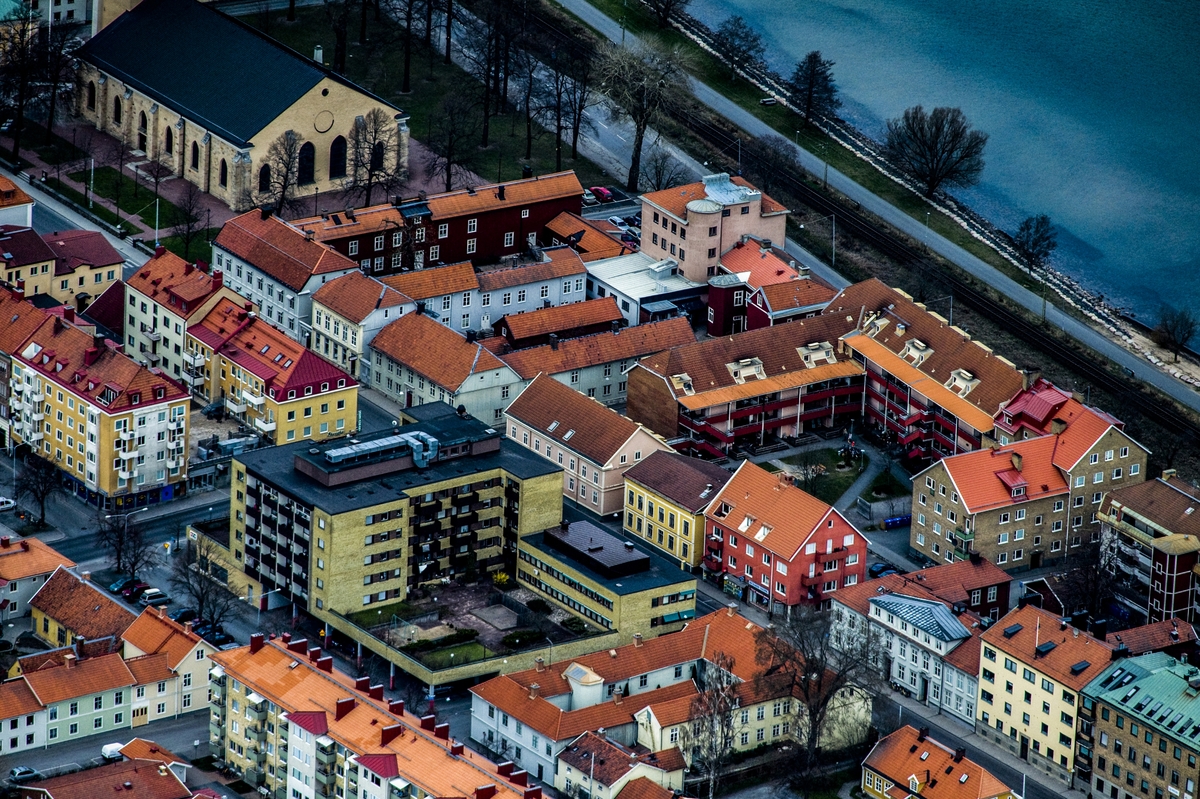 Titel: Flygfoto över Jönköpings centrum med Kristine kyrka.
