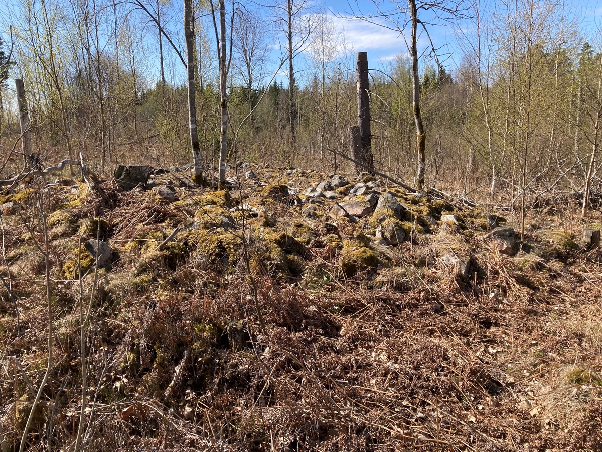 Grav, stensättning, rund, ca 10 meter i diameter och 0,7 meter hög. Påträffad i Pålsboda, arkeologisk utredning 2022, Örebro län.