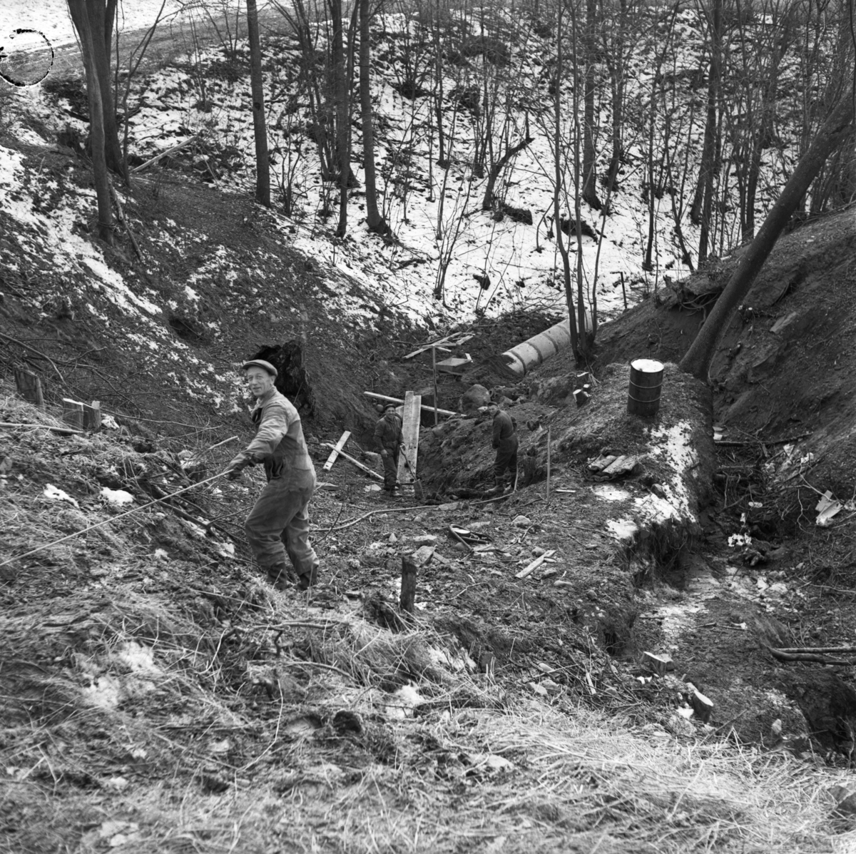 Bergsprängning vid Lekerydsvägen på 1960-talet.