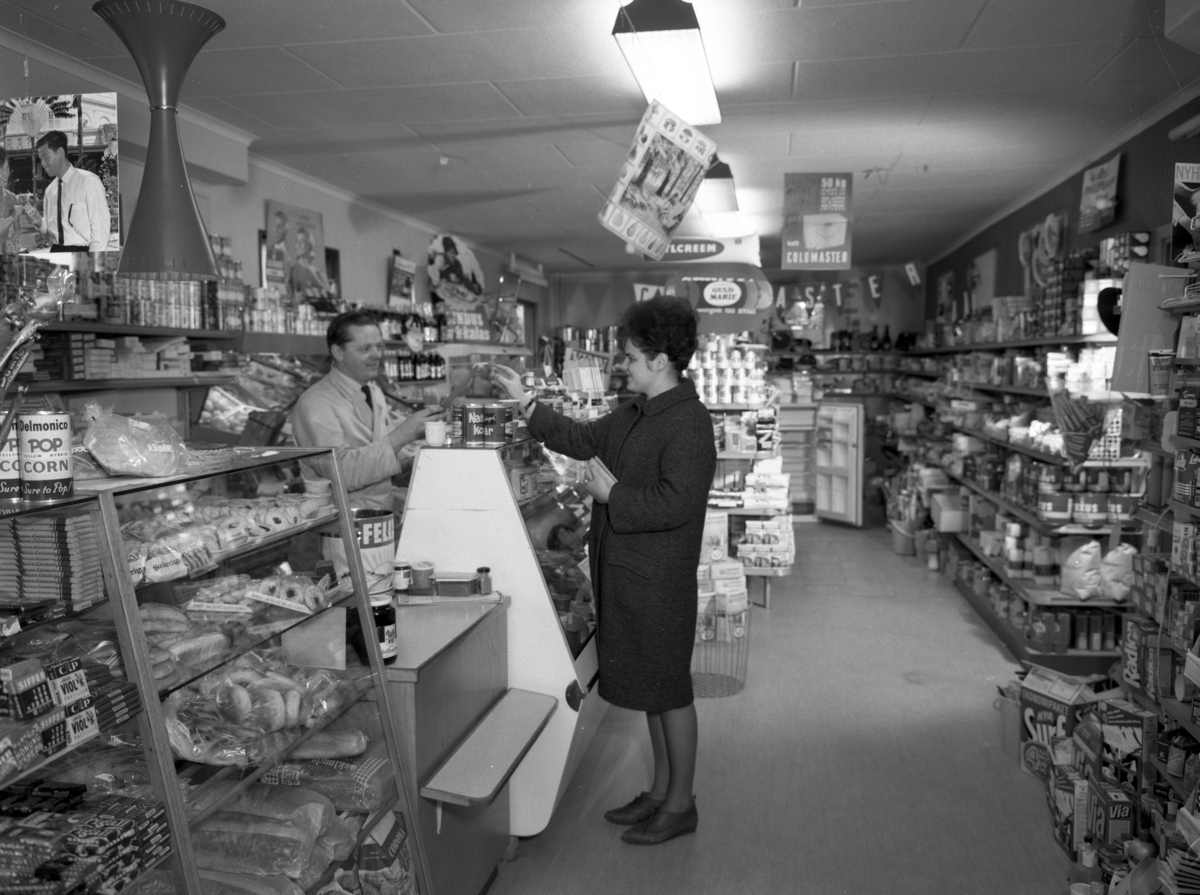 Reklambild för ICA-kuriren på Torsten Olssons affär "handlar´n i Lekeryd"