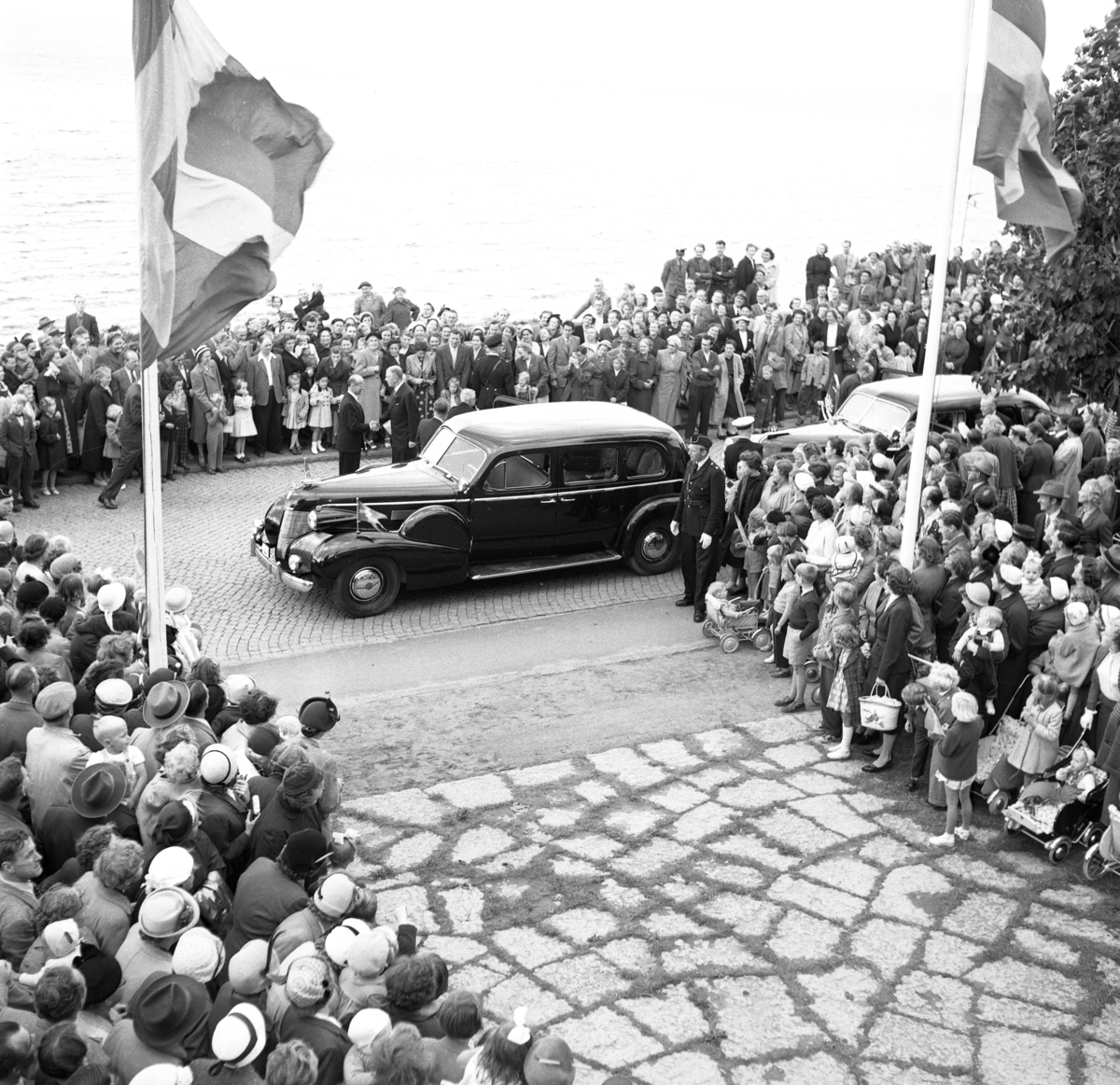 Kung Gustav VI Adolf på eriksgata i Huskvarna den 10 september 1954.