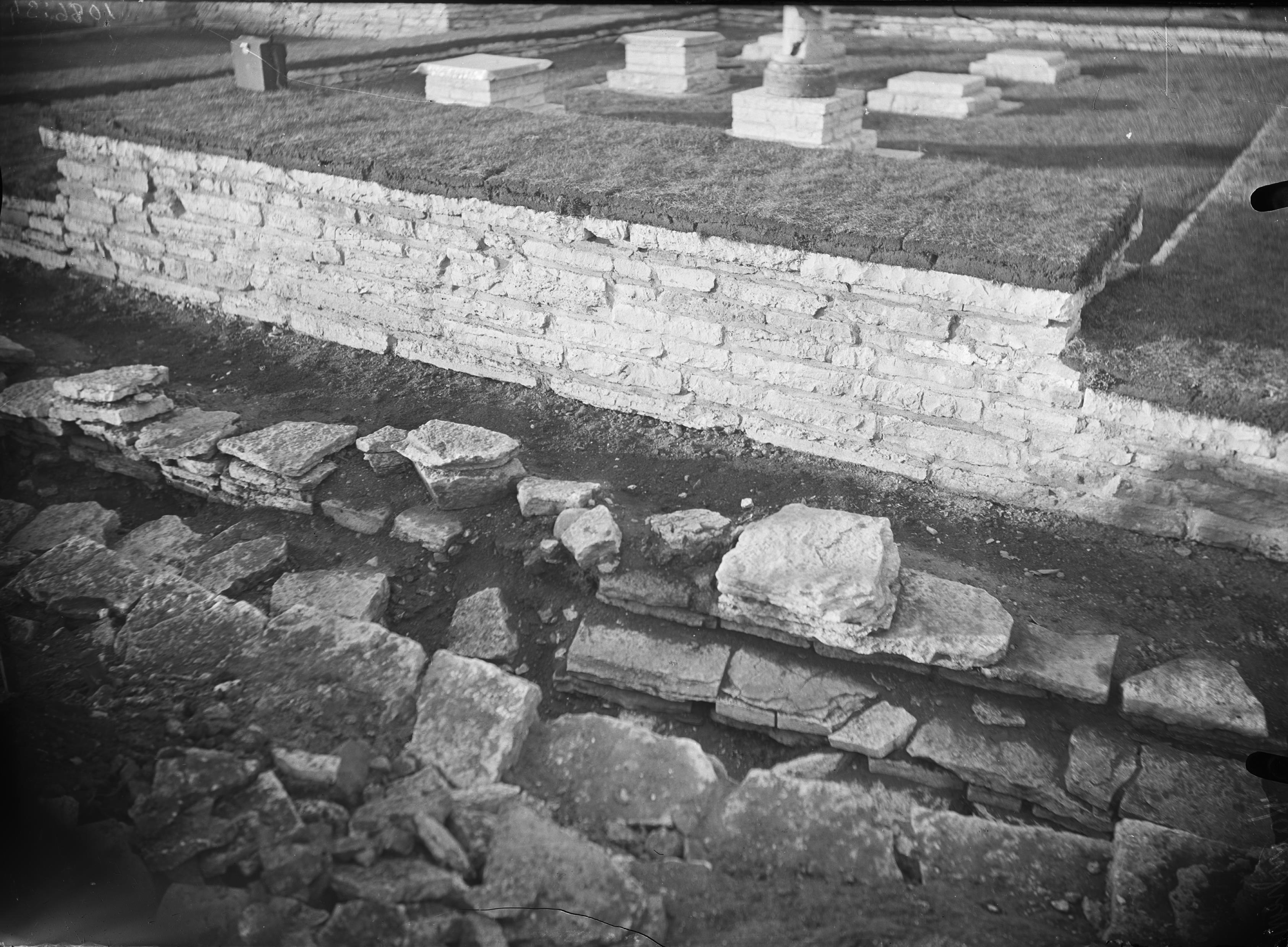 Parti av kanalen söder om refektoriet. I botten murlivet till den äldre sydkanalen. Från sydöst.
