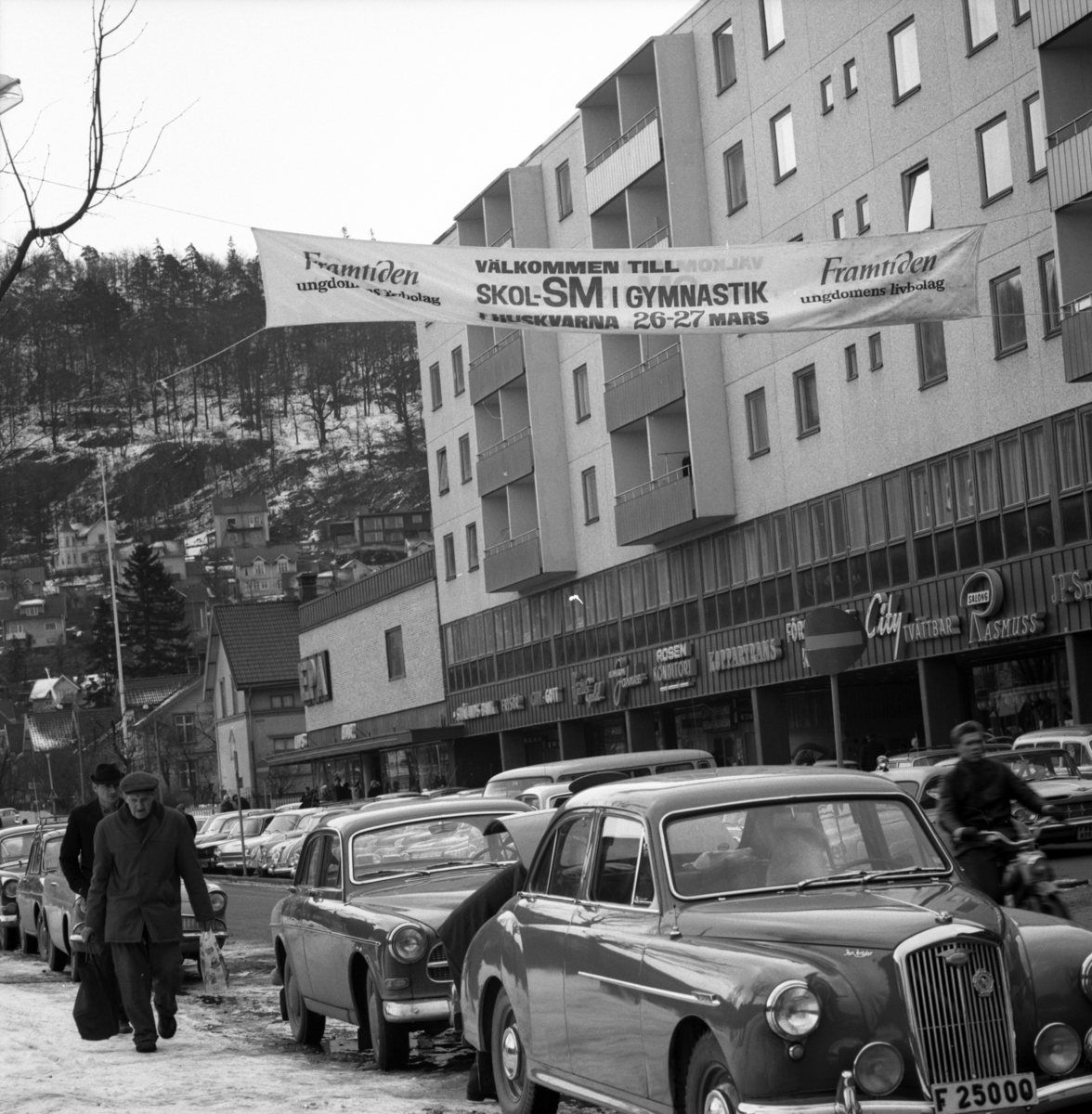 Bild över Rosenhuset utmed Kungsgatan i Huskvarna den 26 mars 1966.