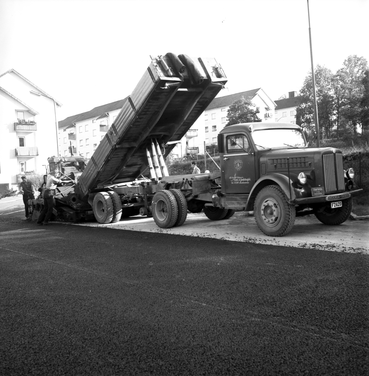 Asfaltering av parkeringsplats utanför Huskvarna Folkets Park den 3 september 1956.